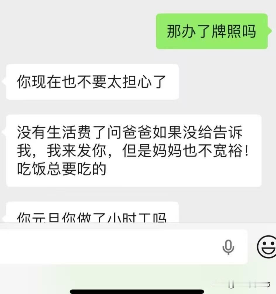 到底该不该继续读下去 2025年12月29日,我在网上发了一篇帖子,大概讲了我爸快六天没有给我发生活费,引起了很多讨论。我以为我爸忘记了,到了2026年1月6日,我妈突然跟我说"他上次说要我搞人脸识别,发验证码说要转生活费你,还以为转1000,你姑姑说你爸爸又在向姑姑的爸爸借钱,还要姑奶奶作担保,我们怀疑爸爸在借贷赌博,姑姑还说他去外面跑车有可能都是假的" 我当时觉得天都塌了,突然觉得可能我爸不是忘记了是他没钱给我发。然后我妈继续跟我说了姑姑跟她说的一些事情,到现在已经没有给我发生活费,已经距离上次发八天了。之前我们家还是不错的,高中有六百的生活费,餐费还是另算,现在大学一千就包括了所有的费用,手机也是那个时候给我买的。但是现在就不太好了,我快放寒假了,找了一个寒假工,在纠结是直接去打寒假工还是先回家一趟了,因为身上只有四十了,打寒假工的话可以包吃包住。