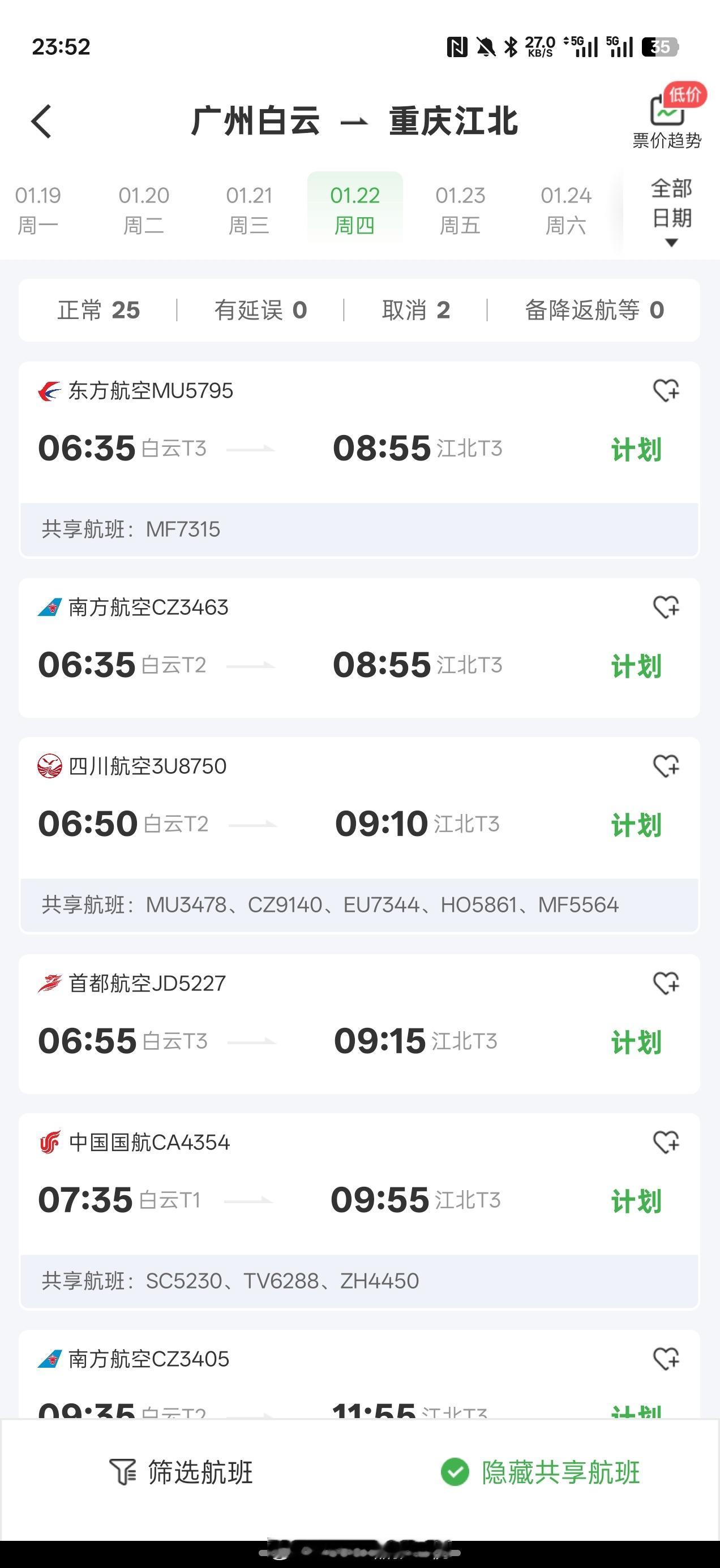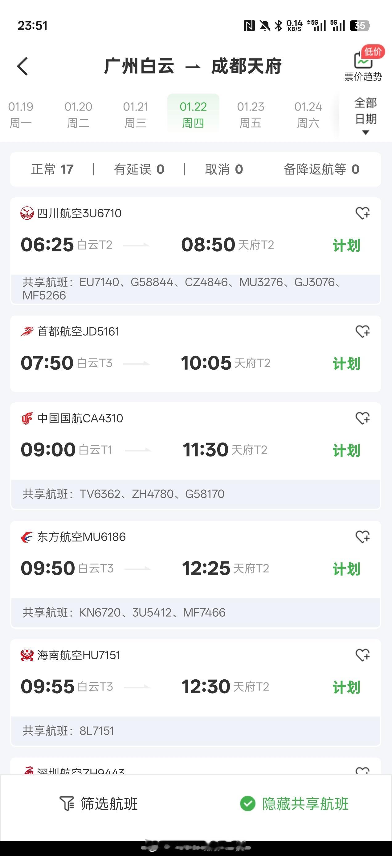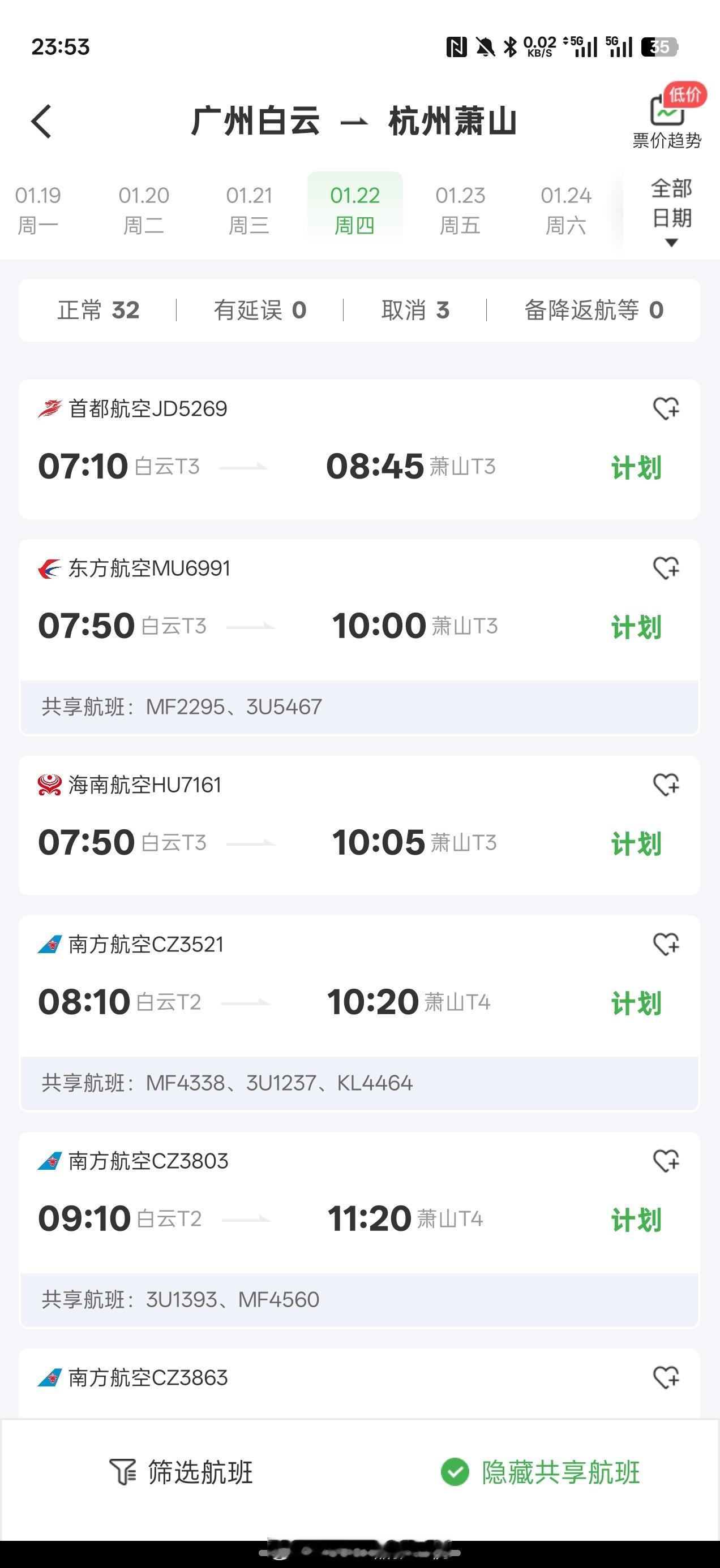 1 月 22 日起大批原来在白云 T1 的航司全部搬到还没有通地铁的白云 T3 起降了……T1 现在看起来仅保留了国航和成都航,其它的航司,包括之前就挪过去的东航系,海航系,吉祥春秋奥凯都搬去 T3 了。比较匪夷所思的是同属国航集团的深航、山航、昆明航居然不和国航一起留在 T1 搬去了 T3……白云 T3 目前最尴尬的就是目前没有普通地铁只有价格极具抢铁定价风格的城际(而且不是北京机场快线 / 上海浦东机场磁悬浮 / 市域铁的那种几分钟轮流发车,是类似于火车的有定时定点到达的那种),所以抛开价格不算,时间也很难控制,如果不想打车你要自己上 12306 去看车次时刻表然后购票再像乘坐高铁一样乘车进站……要么就是坐个航站楼摆渡车去 T1/T2 再坐地铁。以前在广州飞东航系的乘客不多,影响可能不算太大,现在一大片航司都过来了……还是地主南航集团待遇好,雷打不动守住 T2(但南廉航的飞机我是不会坐的)……
