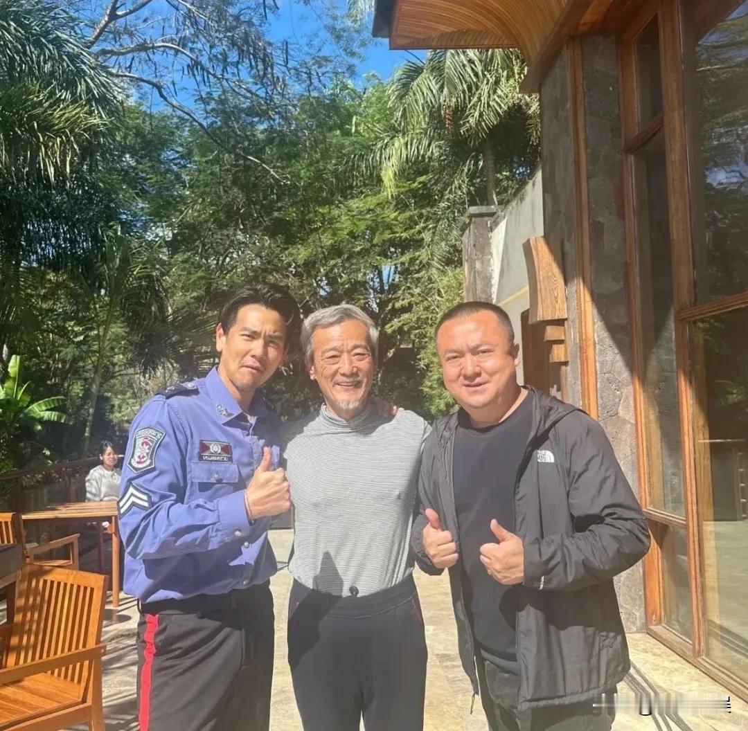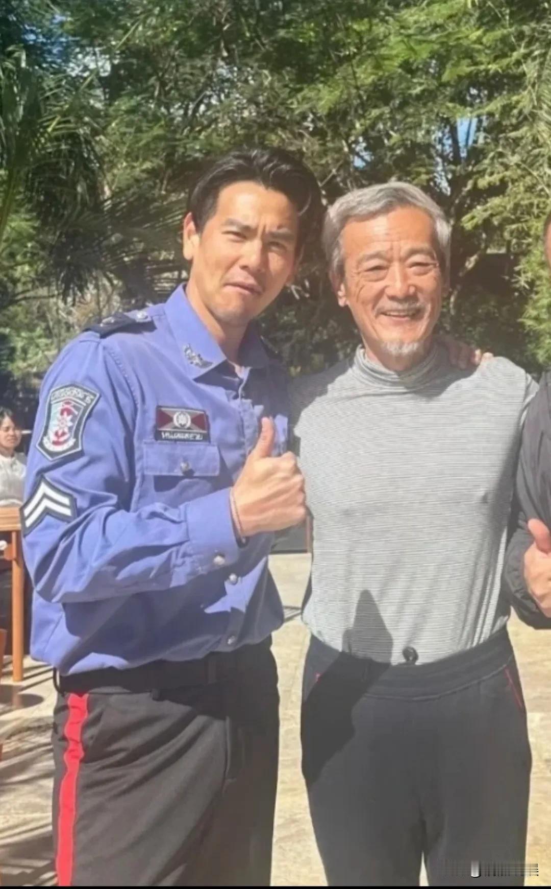 彭于晏近照,和演员张琪同框,穿着一身剧里角色的衣服,肤色偏黑,个子高挑,身材练的挺高好的,健硕结实。 就是笑起来额头上的皱纹很明显,有点见老,还有这穿搭,不是靠气质和颜值撑着,就像一位纯路人。[捂脸] 很喜欢他痞帅痞帅的气质,也很喜欢他的的演技,就是这几年作品有点少,也特别低调。