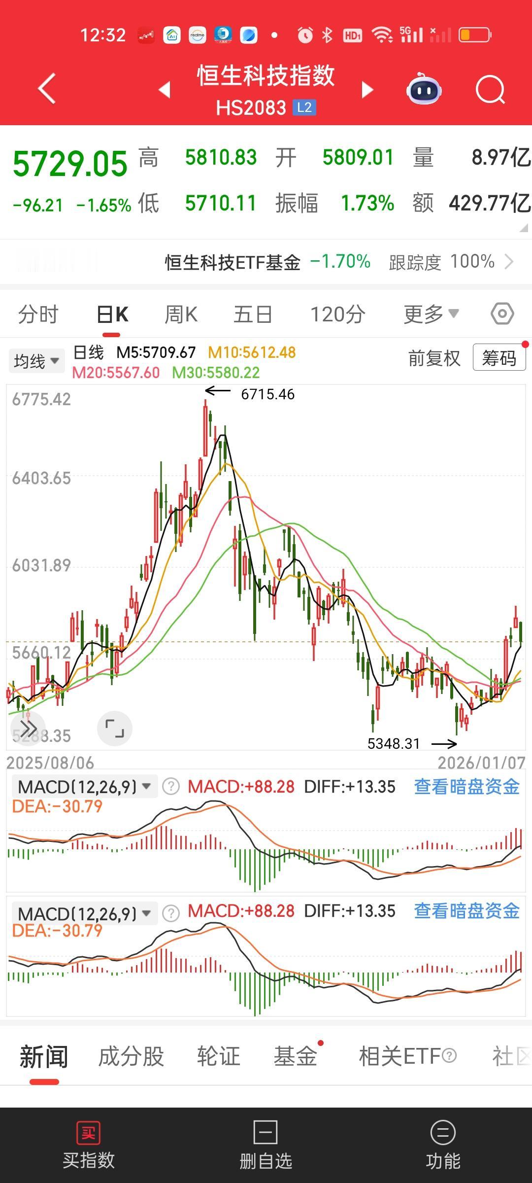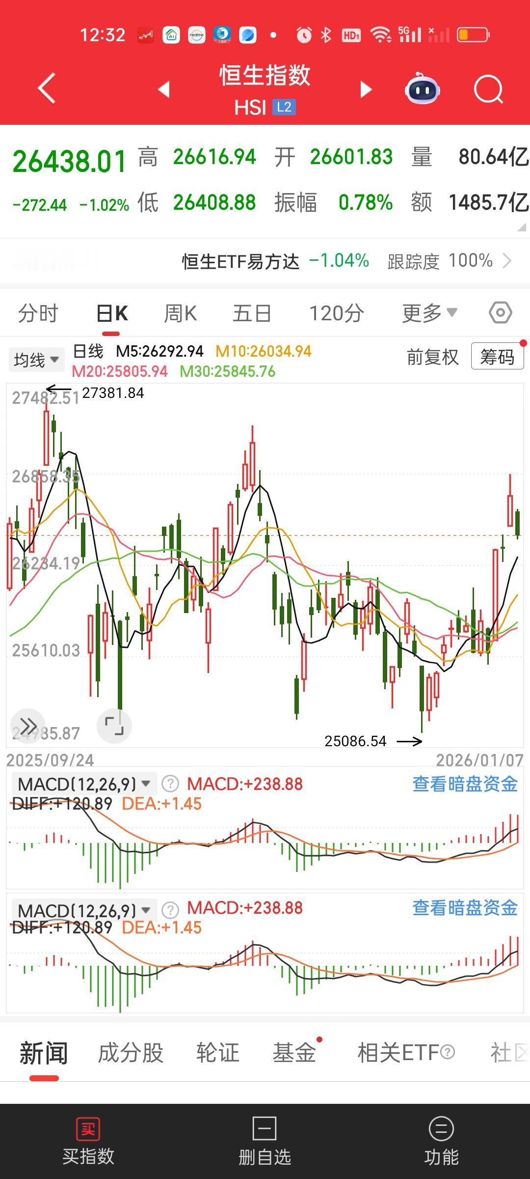 港股今天尽管是跌的,但是跌幅并不大,而且两大指数中午收盘依旧站在所有均线的上方。我认为还会回踩一下5日线,整体趋势并没有走坏,不需要担心。