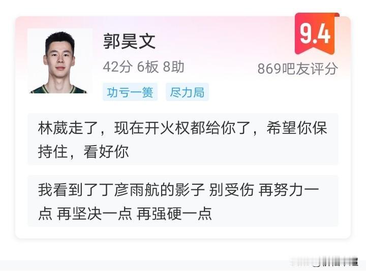 太强了!独得42分却换不来一场胜利,郭昊文只能仰天长叹吞下苦果。 此役面对传统豪强广东队,同曦球员从一开始就展现了拿下比赛的决心,25岁的郭昊文更是利用前突后投屡屡突破后轻易上篮得分。 作为球队当家球星,郭昊文有着很强的突破能力和多样化的得分手段,在他的积极带动下球队一直保持着领先。 常规比赛快比赛时,郭昊文有着一次杀死比赛的机会,在把焦泊焦成功晃开的情况下却投篮不进,最终把比赛拖入了加时。随之同曦队也遗憾告负。