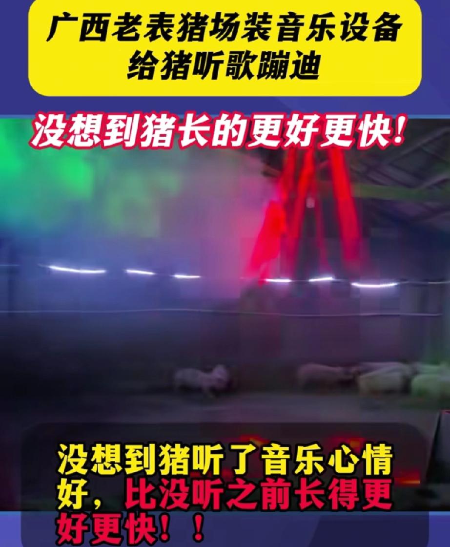 广西桂林这位养猪大哥的操作简直绝了,嫌养猪无聊直接在猪舍装KTV,灯光音乐幕布全配齐,边嗨歌边喂猪,没想到意外解锁养猪新姿势! 本来只是想让自己干活不枯燥,结果猪比人还爱这氛围,一听歌就摇尾巴溜达,不再闷头睡大觉,出栏时个个膘肥体壮,比往年养的猪长势好太多。 这哪是养猪,分明是给二师兄们开“养生派对”! 其实这事儿也印证了一个理儿,不管是人还是动物,心情舒畅了状态才会好,大哥用玩乐的心态化解了养猪的枯燥,反而收获了意外惊喜,这可比埋头苦干管用多了。 你们还见过哪些脑洞大开的养殖妙招?评论区分享一下呗!