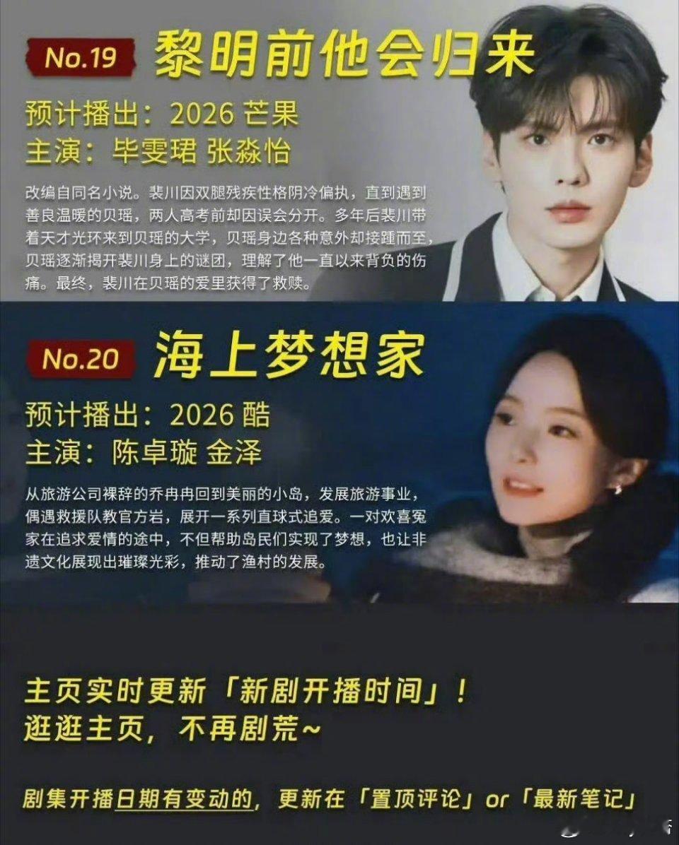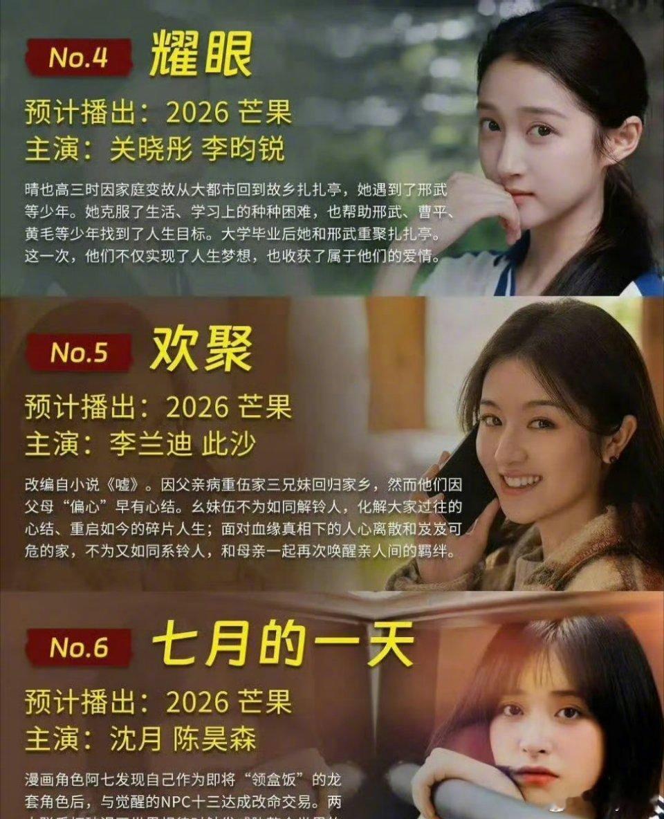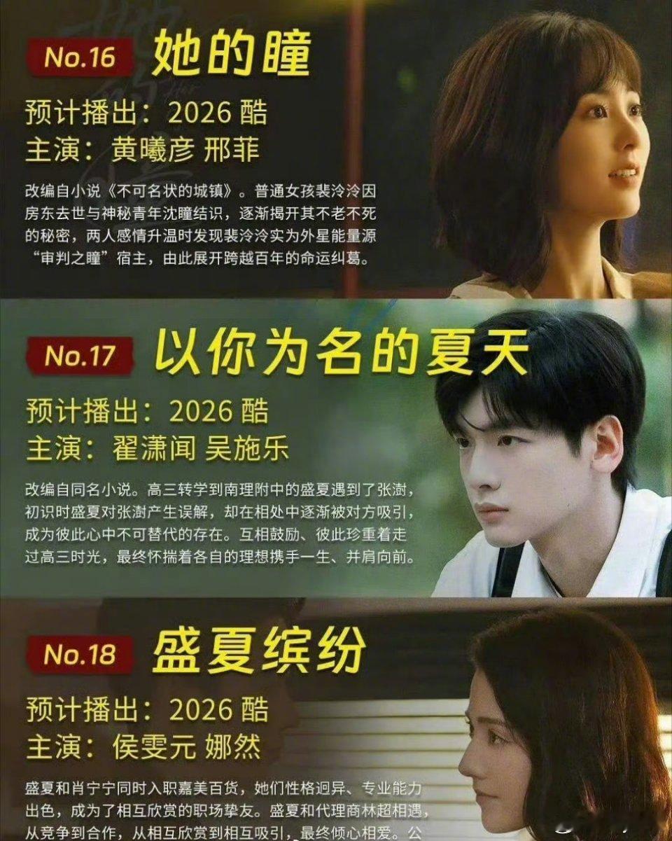 预计2026播的现偶2026年好多现偶 预计2026年播的现偶真的好多啊!!每部剧都是可以值得期待的电视剧(图源网络侵删)