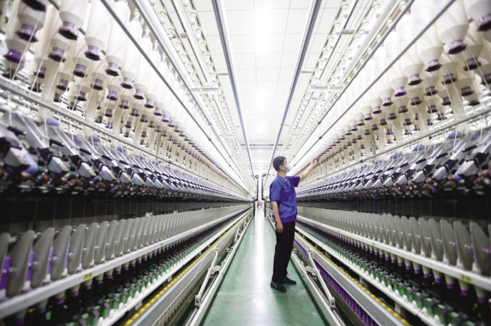 在临清市,三和纺织集团的织造车间更是上演“智变”奇迹。500多台新型喷气织机飞速运转,几名工人骑着电动车穿梭巡检,数字化管理系统实时监控生产全流程。“总投资5400万元的织造车间数字化智能技改项目申报中央超长期特别国债政策,成功获批项目支持资金567万元,有效减轻了企业资金压力。”临清三和纺织集团有限公司副总经理李召峰介绍,项目投产后年产坯布1.1亿米,生产效率提高35%,能耗下降30%,每天能印染花布40万米,用工却节省了50%。