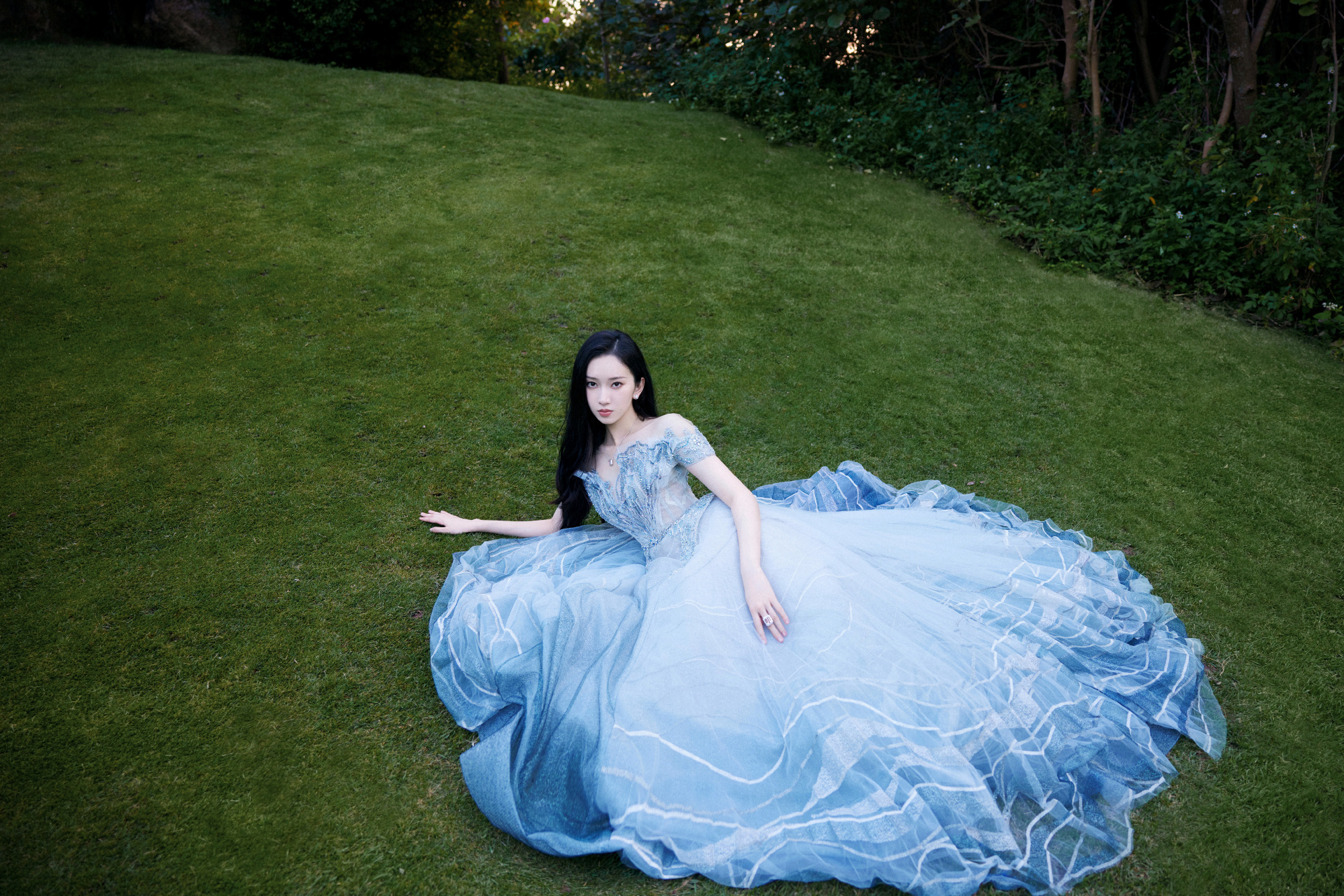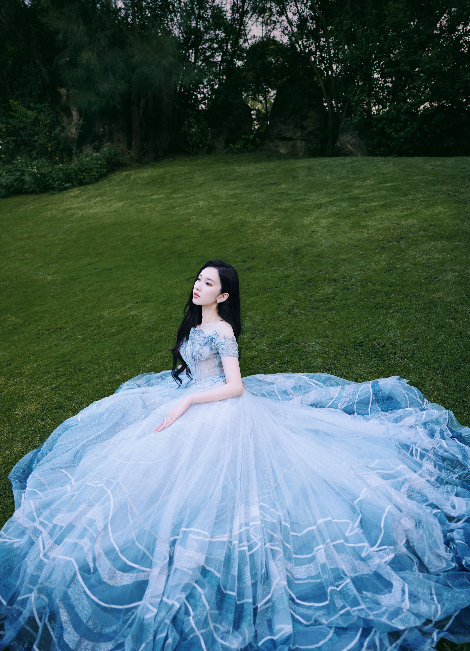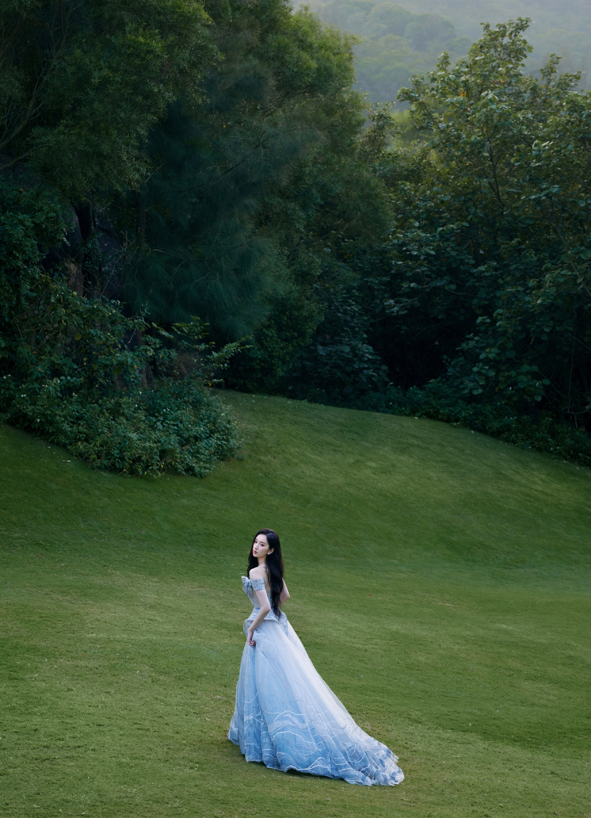 刘令姿:一袭淡蓝连衣纱裙,清冷绰约,优雅迷人。刘令姿