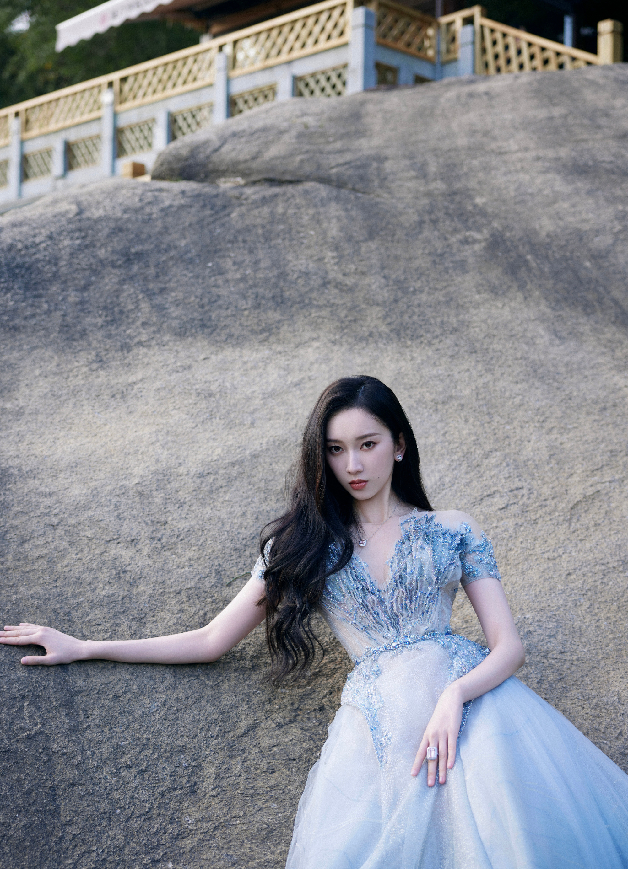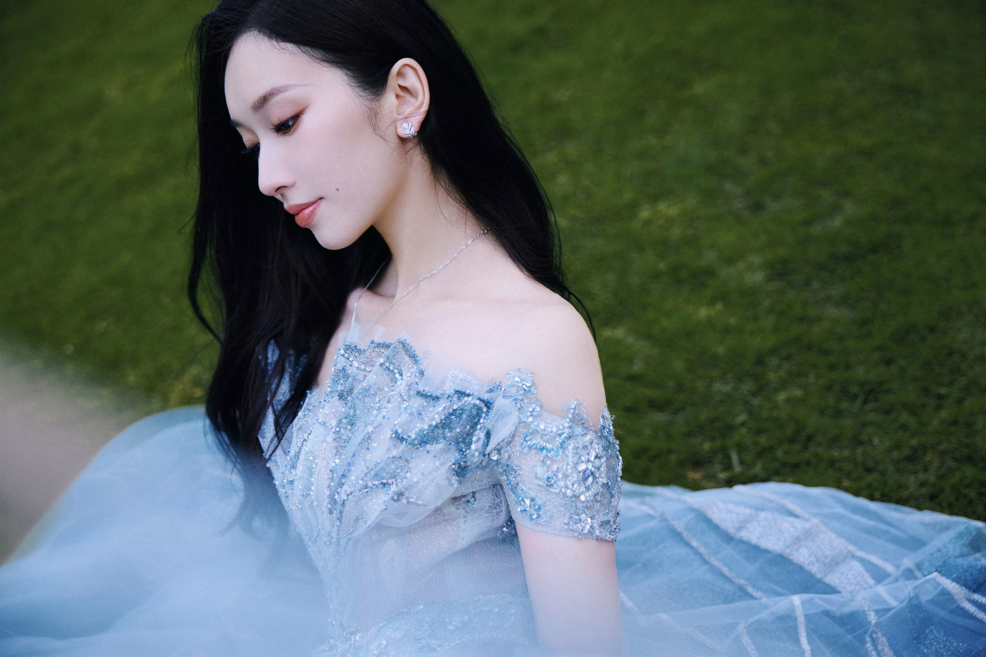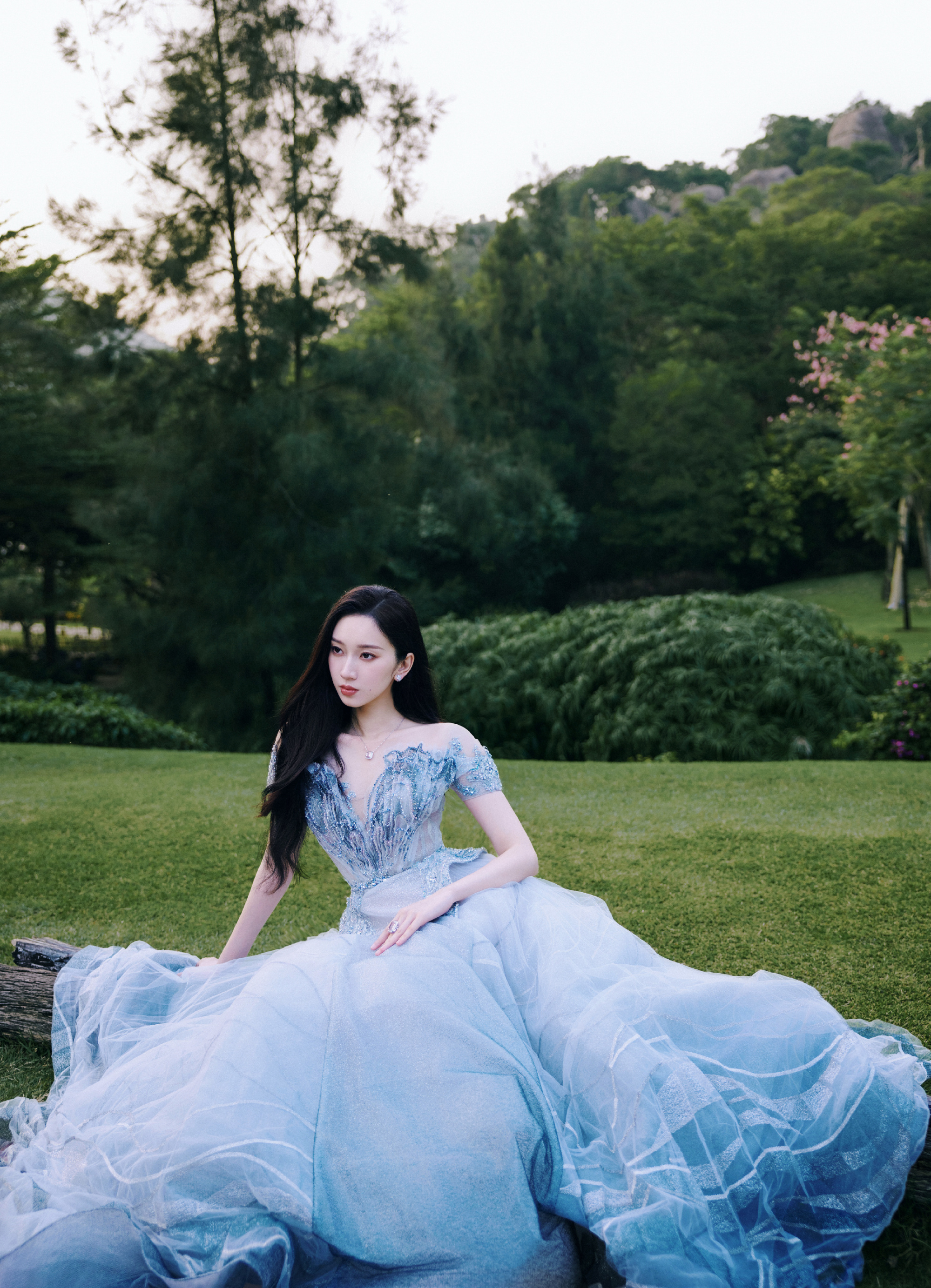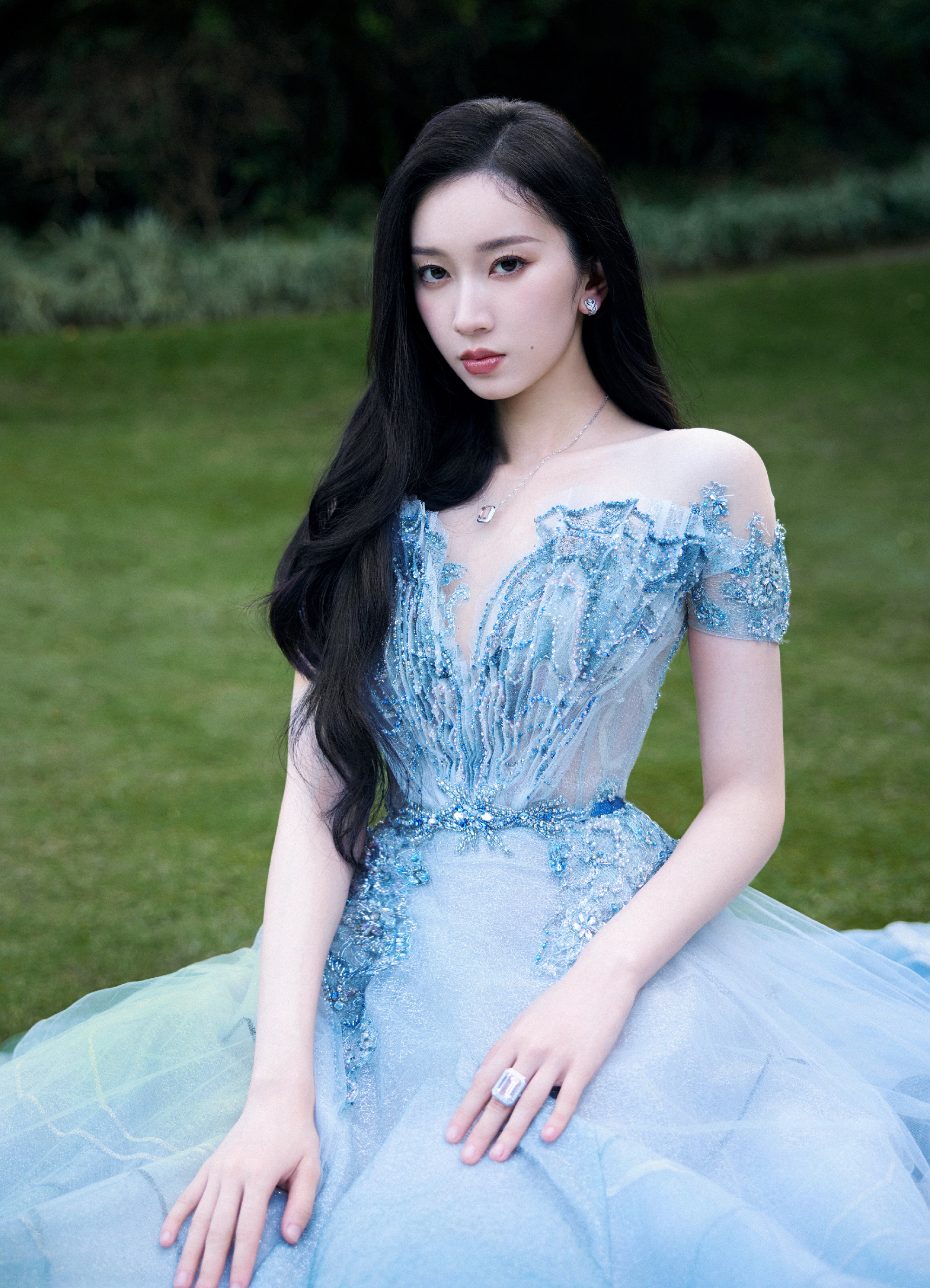 刘令姿:一袭淡蓝连衣纱裙,清冷绰约,优雅迷人。刘令姿