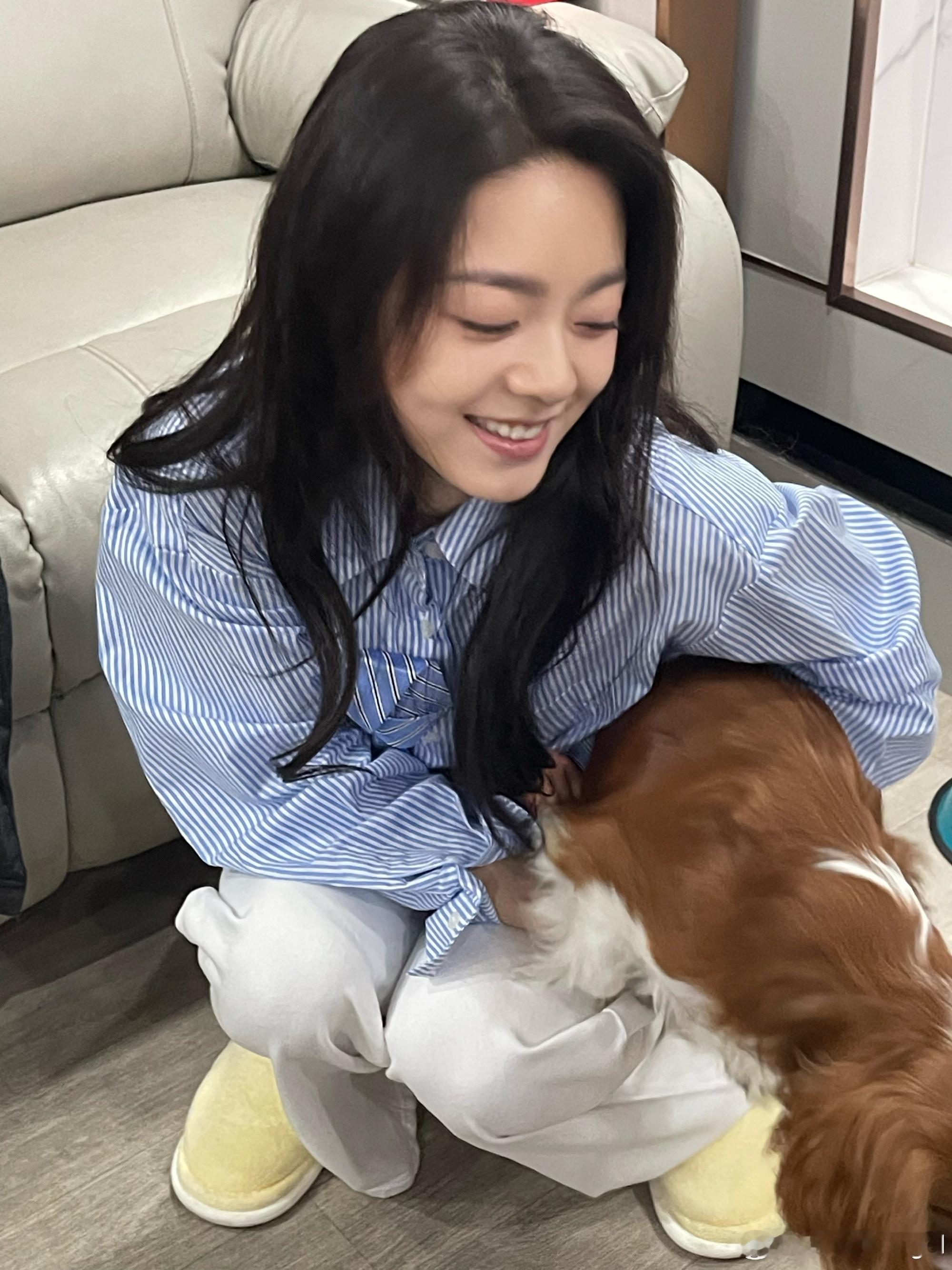 赵今麦晒和狗狗合照麦麦的笑容和拿铁的乖巧,太可爱了