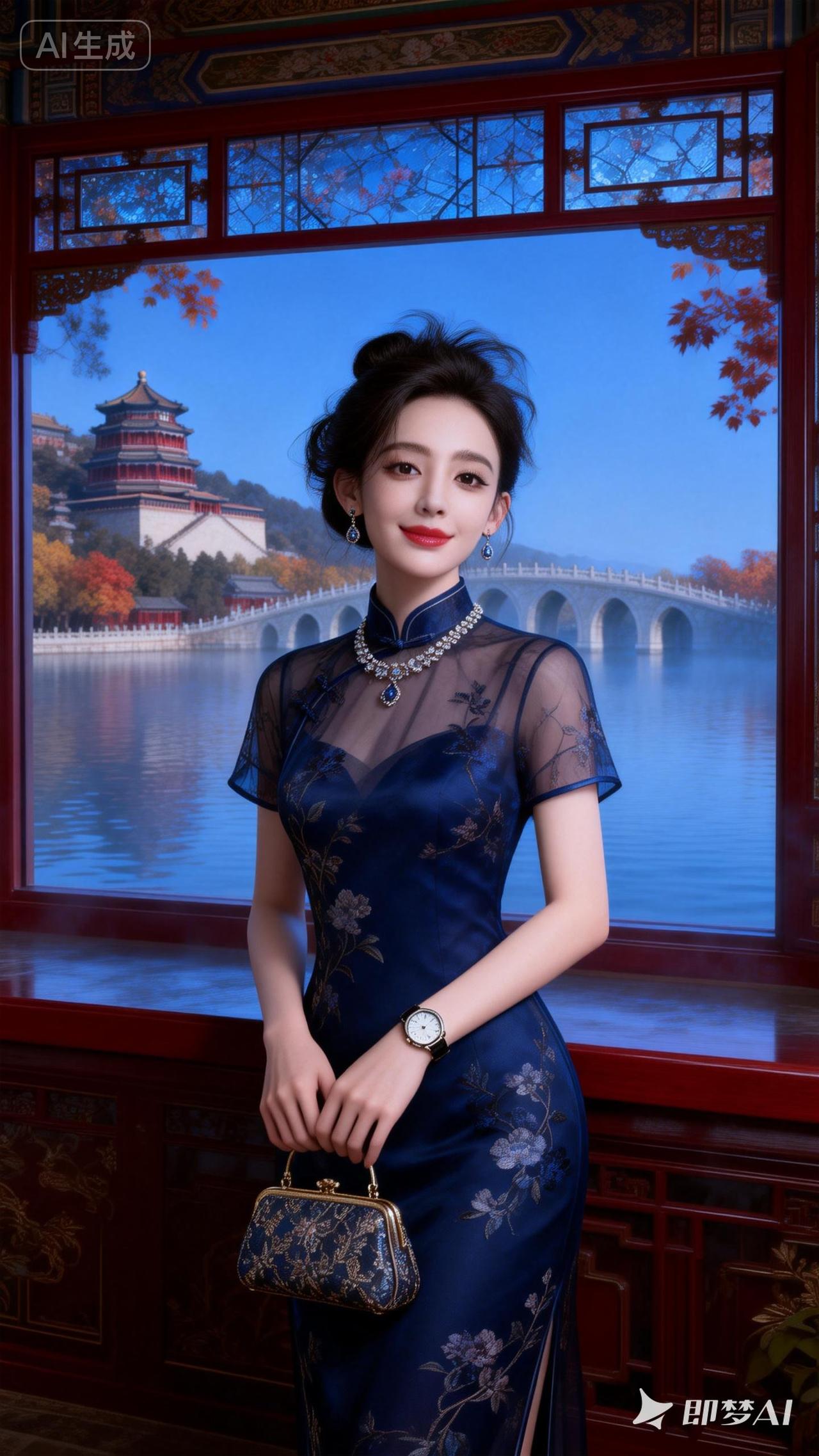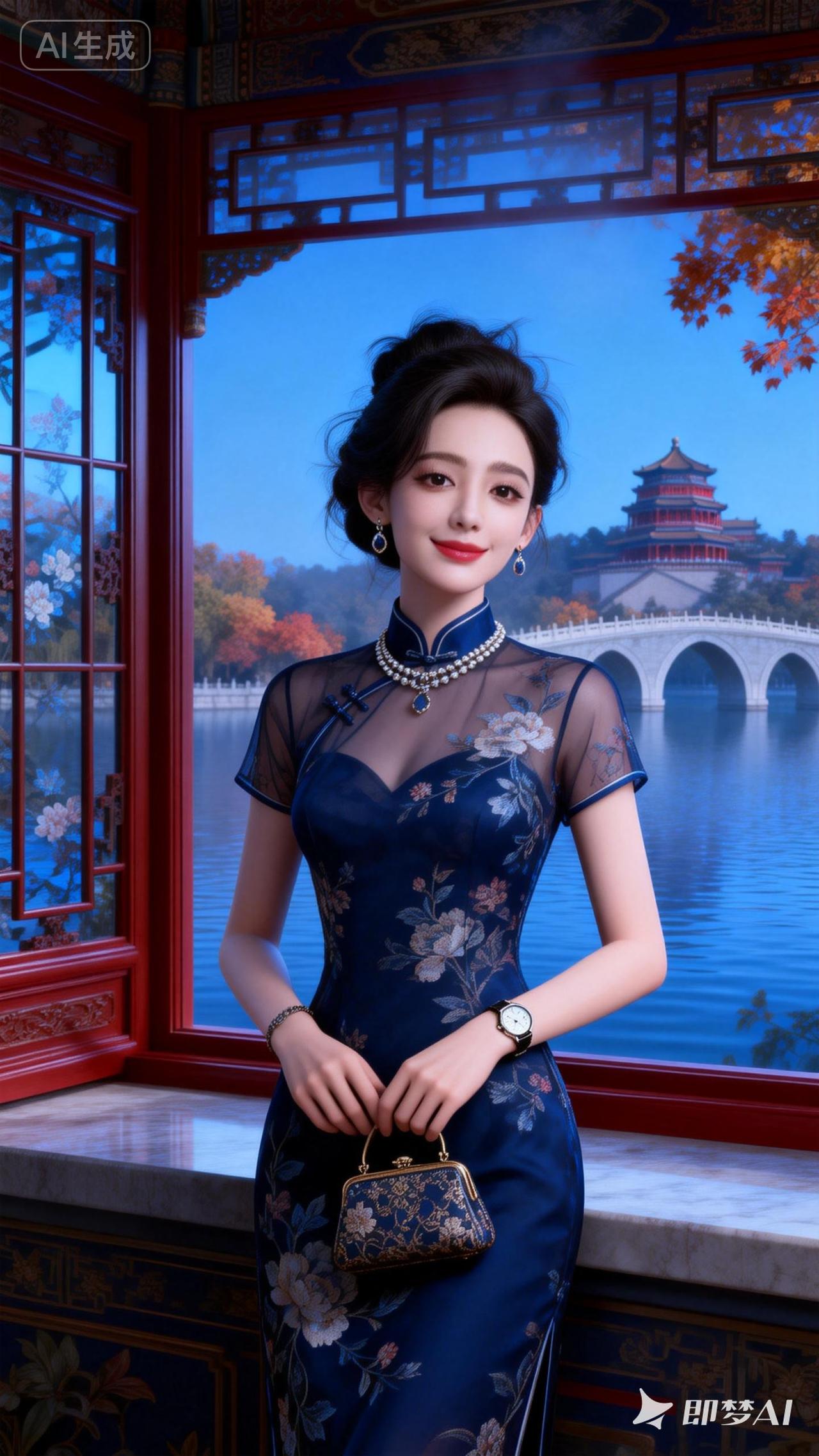 《旗袍裙摆,摇落一城风月》青石板路漫过旧巷的肩油纸伞撑开半壁云天一袭旗