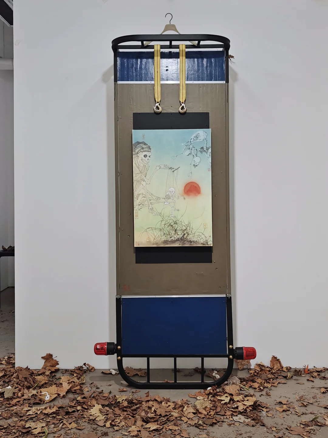 《红日新生图》是戏仿《骷髅幻戏图》的绘画装置