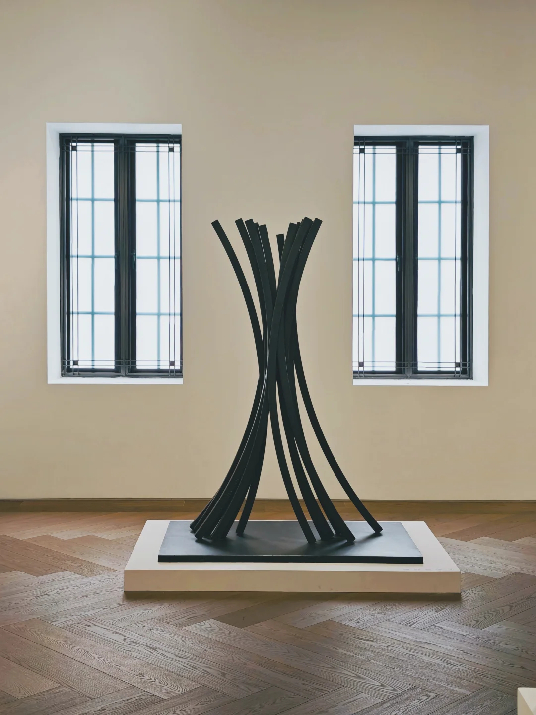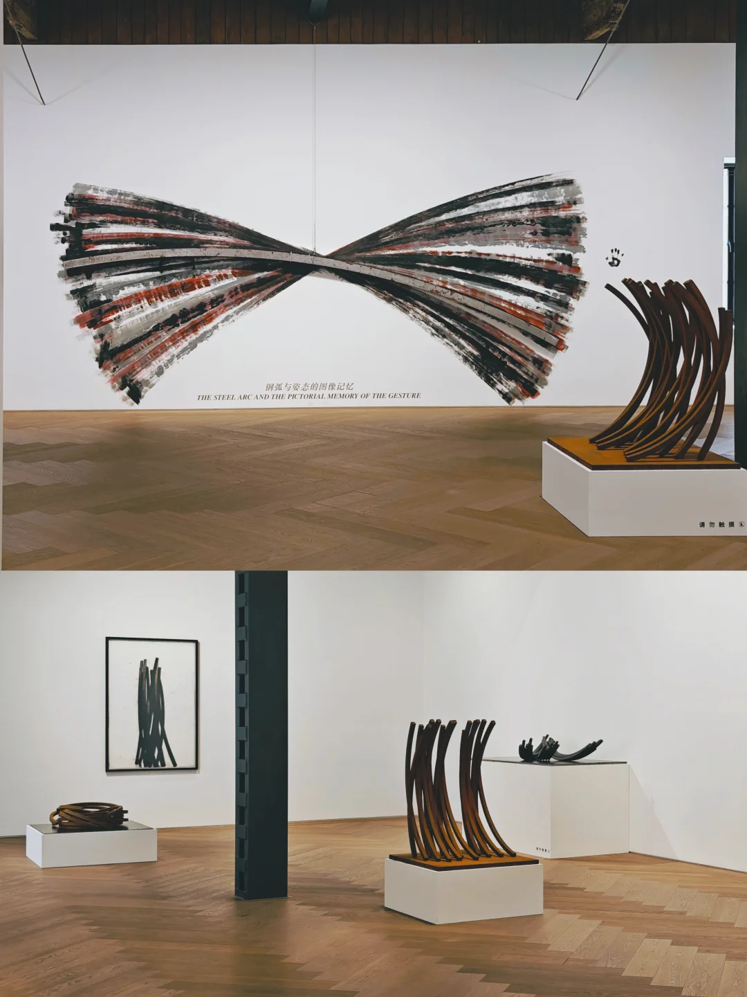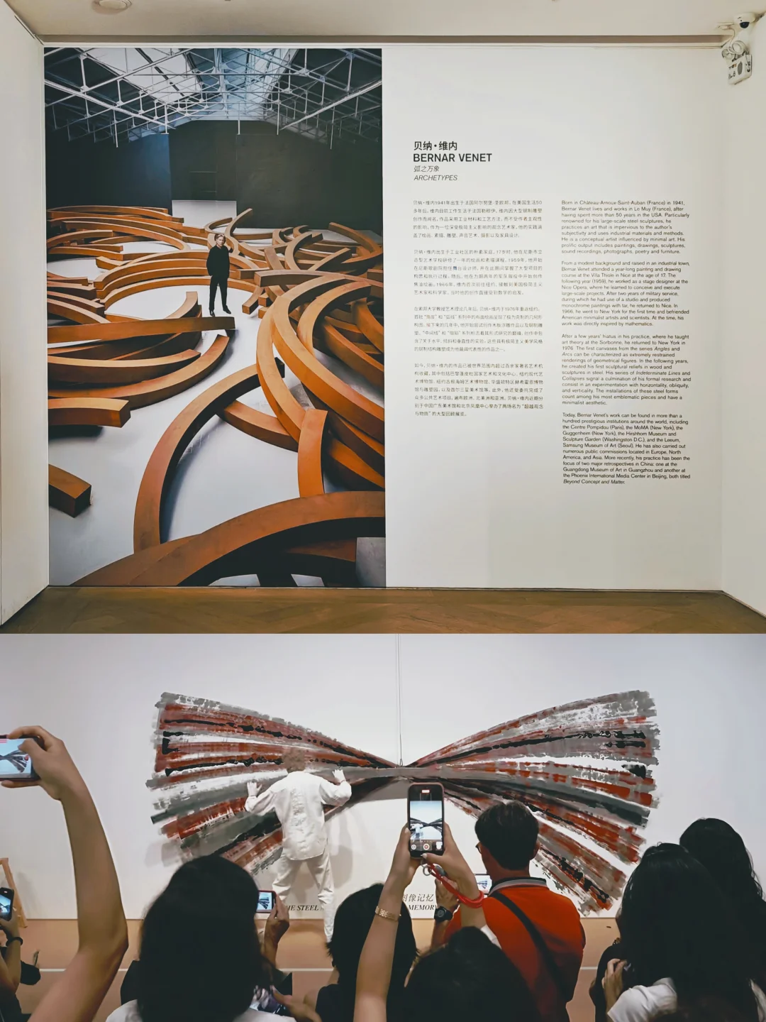 ??贝浩登上海 ??虎丘路27号3层 ?周二至周六11:00-19:00 1??弧之万象 ??10.24?? ?????Bernar Venet ??展览在贝浩登右侧的展厅,中间C位墙面是开幕日艺术家现场进行的行为表演的成品《钢弧与姿态的图像记忆》 ??维内是法国????观念艺术先驱,是与Brancusi、Tony Smith、Richard Serra等现代雕塑革新者并列的大师,以大型钢制雕塑闻名,深受极简主义影响。他认为抽象艺术并非装饰,而是“挑战思想确定性的谜题”,推动观者重新思考逻辑与认知。 ??他的核心创作元素为“弧线”和“不确定线条”,强调线条在空间中的独立性与力量感,挑战传统雕塑对空间的处理方式。 ??他认为艺术“不必与世界妥协”,创作以强烈姿态冲击环境,而非融入城市景观。 2??心我的炼金术 ??10.24?? ?????Jason Boyd Kinsella ??金塞拉以MBTI人格测试为灵感,将性格特征分解为几何单元(形状、颜色、大小),重新组合成心理肖像,揭示“他人眼中形象与自我认知的差异”。 ??他继承Mondrian、Charles Biederman等的几何抽象传统,但转向内心心理探索。作品融合超现实主义气质与古典大师的简洁表面,情感表达诡异、温柔而有力。 ??他摒弃传统面部结构,聚焦情感与心理本质,作品兼具模块化与树状结构特点,融合直觉与理性,受道家“无为”哲学影响。 ??贝浩登左侧展厅深处是展览核心作品《花园》,为大尺幅的黑白创作,隐喻心灵运作与自我直面; 青铜雕塑《朱莉娅》从画作衍生为立体雕塑,平衡几何形态与悬臂结构; 《露娜》致敬米勒《拾穗者》,风格更柔和、充满希望,突破早期头肩像局限。 ??两个展都体现了当代艺术中对抽象语言的深化探索,分别从外部空间与内部心理两个维度挑战观者的感知与认知。 ??关注我,每天带你免费看展??