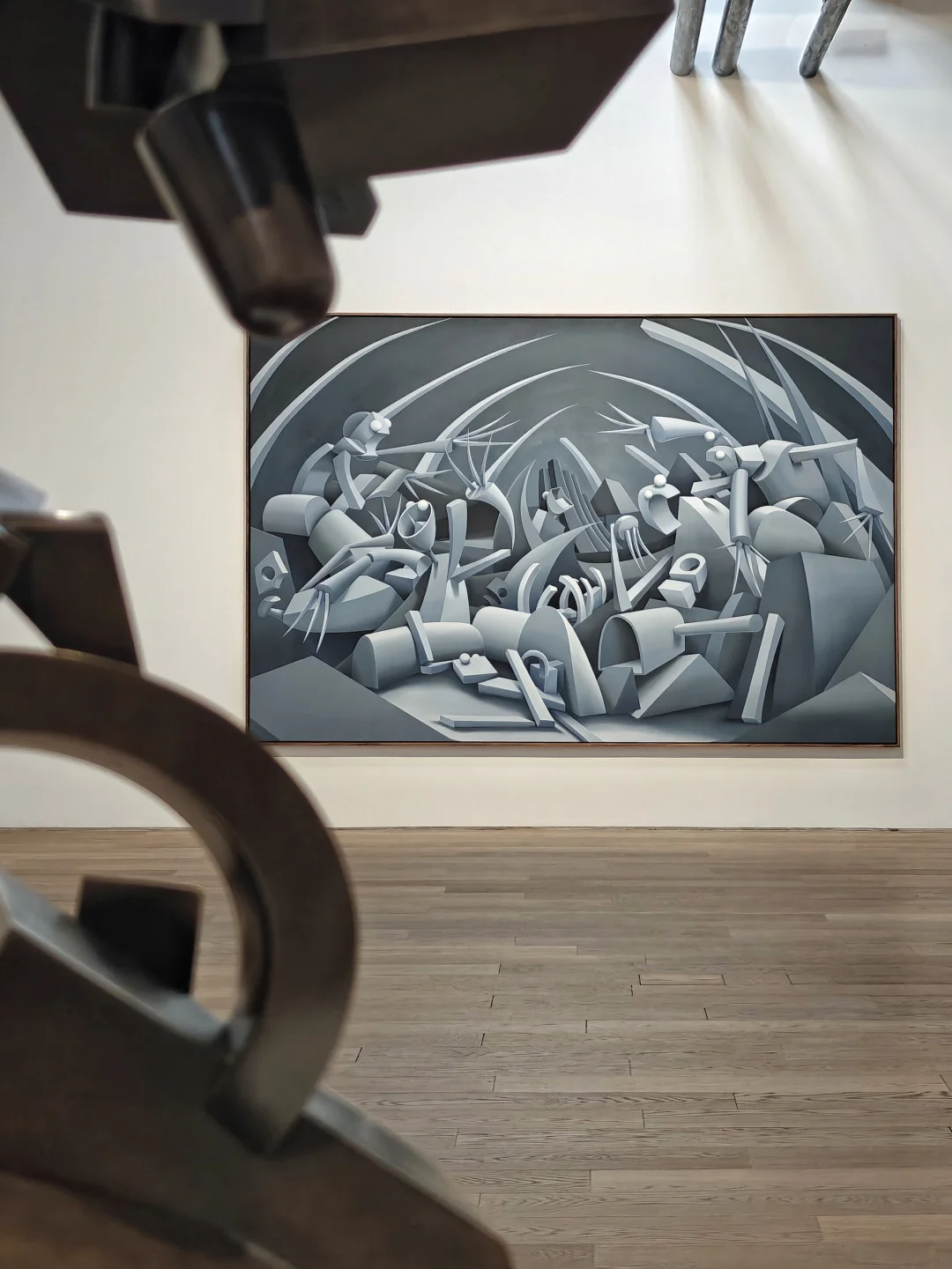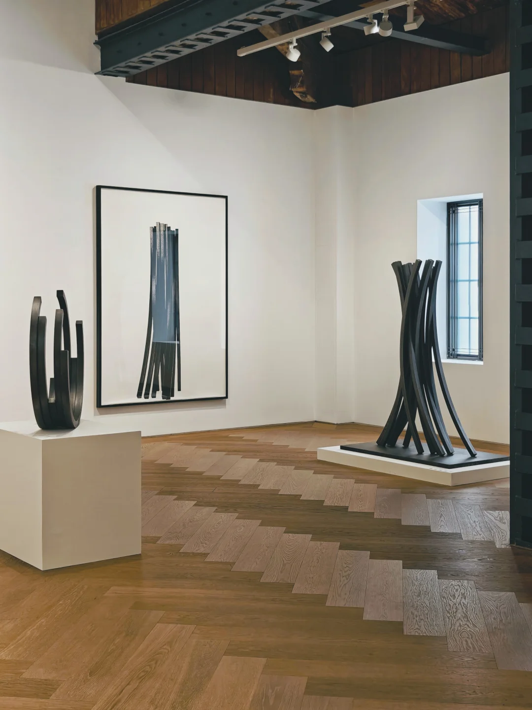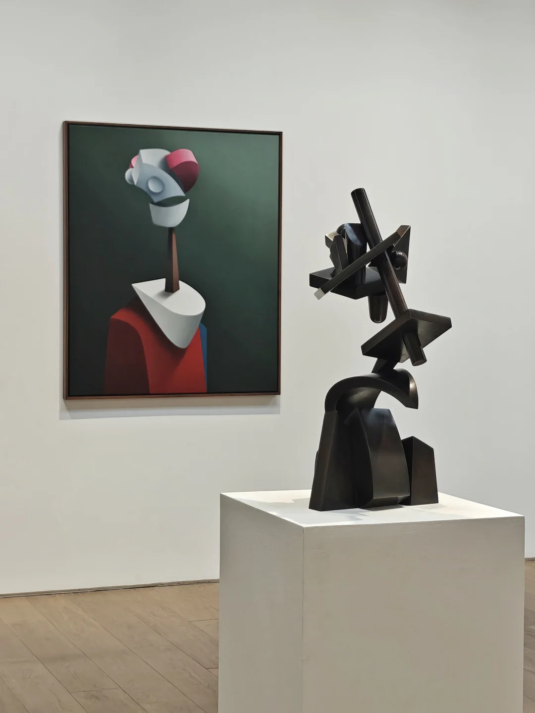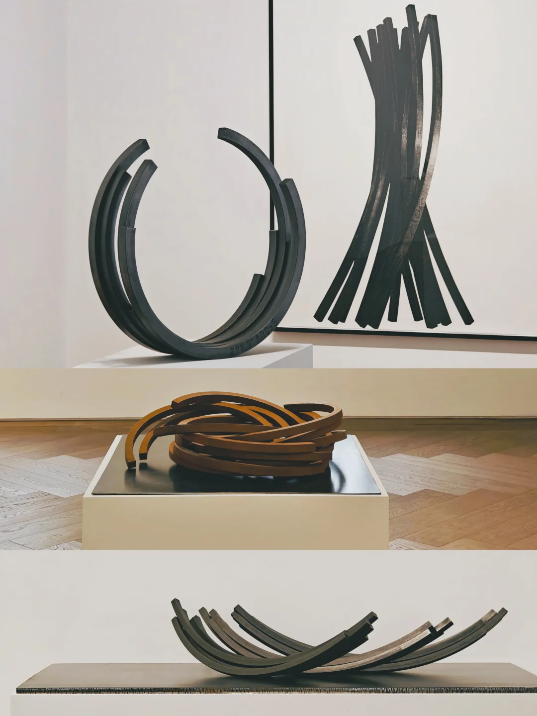 ??贝浩登上海 ??虎丘路27号3层 ?周二至周六11:00-19:00 1??弧之万象 ??10.24?? ?????Bernar Venet ??展览在贝浩登右侧的展厅,中间C位墙面是开幕日艺术家现场进行的行为表演的成品《钢弧与姿态的图像记忆》 ??维内是法国????观念艺术先驱,是与Brancusi、Tony Smith、Richard Serra等现代雕塑革新者并列的大师,以大型钢制雕塑闻名,深受极简主义影响。他认为抽象艺术并非装饰,而是“挑战思想确定性的谜题”,推动观者重新思考逻辑与认知。 ??他的核心创作元素为“弧线”和“不确定线条”,强调线条在空间中的独立性与力量感,挑战传统雕塑对空间的处理方式。 ??他认为艺术“不必与世界妥协”,创作以强烈姿态冲击环境,而非融入城市景观。 2??心我的炼金术 ??10.24?? ?????Jason Boyd Kinsella ??金塞拉以MBTI人格测试为灵感,将性格特征分解为几何单元(形状、颜色、大小),重新组合成心理肖像,揭示“他人眼中形象与自我认知的差异”。 ??他继承Mondrian、Charles Biederman等的几何抽象传统,但转向内心心理探索。作品融合超现实主义气质与古典大师的简洁表面,情感表达诡异、温柔而有力。 ??他摒弃传统面部结构,聚焦情感与心理本质,作品兼具模块化与树状结构特点,融合直觉与理性,受道家“无为”哲学影响。 ??贝浩登左侧展厅深处是展览核心作品《花园》,为大尺幅的黑白创作,隐喻心灵运作与自我直面; 青铜雕塑《朱莉娅》从画作衍生为立体雕塑,平衡几何形态与悬臂结构; 《露娜》致敬米勒《拾穗者》,风格更柔和、充满希望,突破早期头肩像局限。 ??两个展都体现了当代艺术中对抽象语言的深化探索,分别从外部空间与内部心理两个维度挑战观者的感知与认知。 ??关注我,每天带你免费看展??