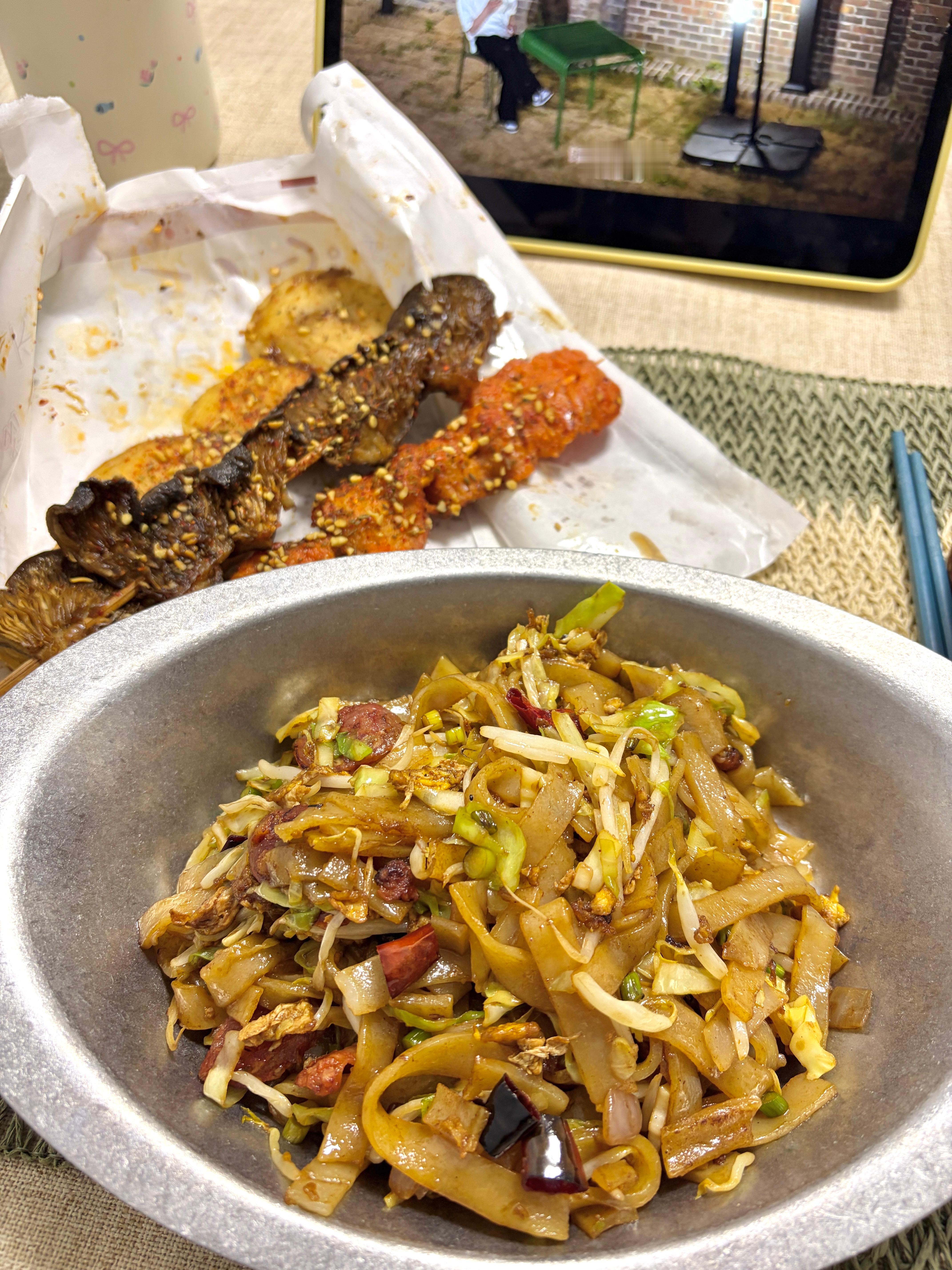 又幸福了小姐姐!家楼下的炒河粉➕炸干香的炸串太好吃了!!!
