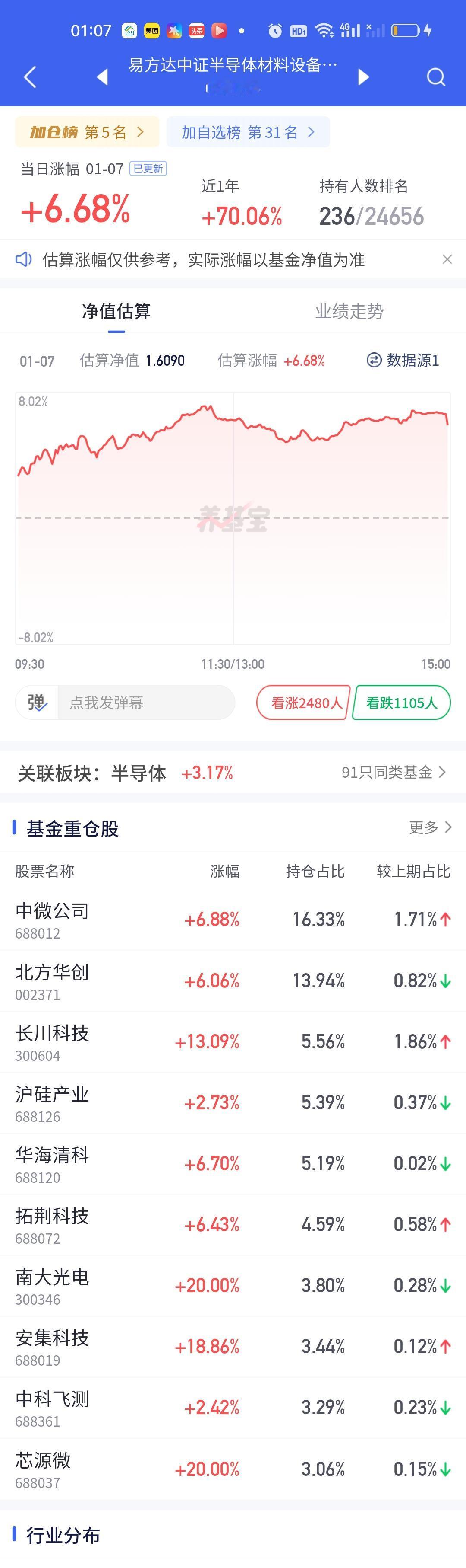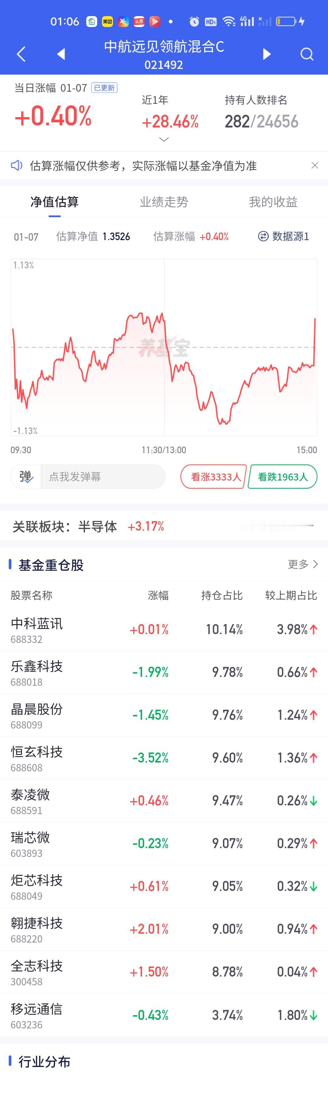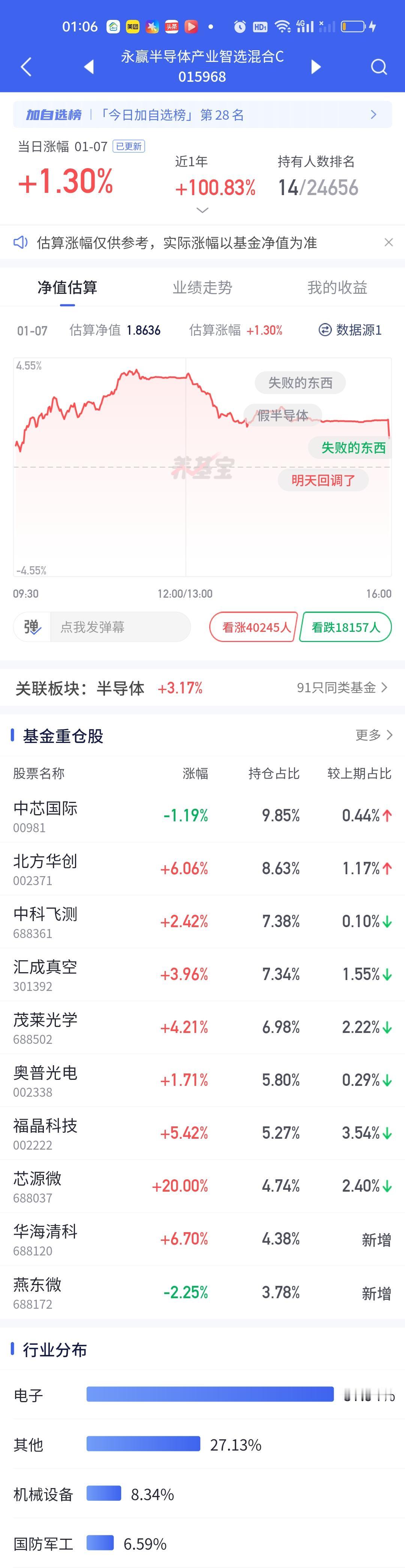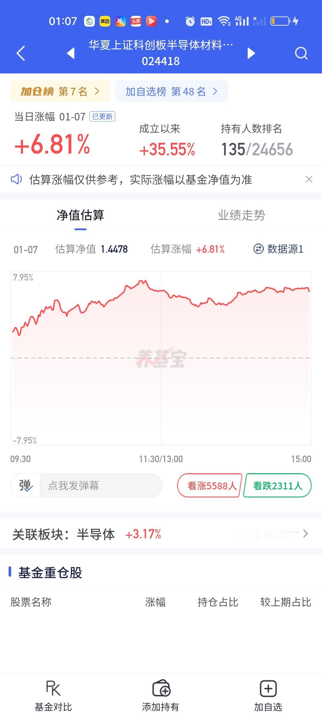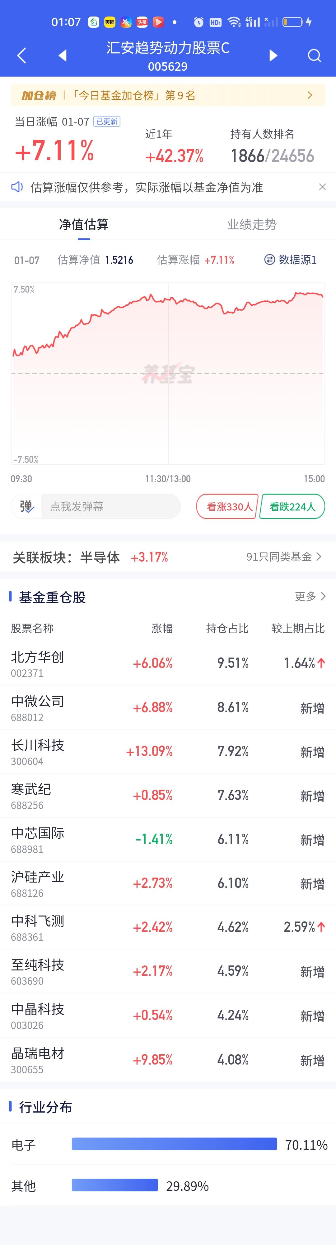 半导体板块是有很多细分的,你拿的细分不对,收益是有天差地别的。你看今天东方阿尔法科技优选大涨7.24%,汇安趋势动力股票大涨7.11%,南方信息创新大涨6.90%,可是中航远见领航只涨了0.40%,永赢半导体产业只涨了1.30%,正所谓选择不对,努力白费!