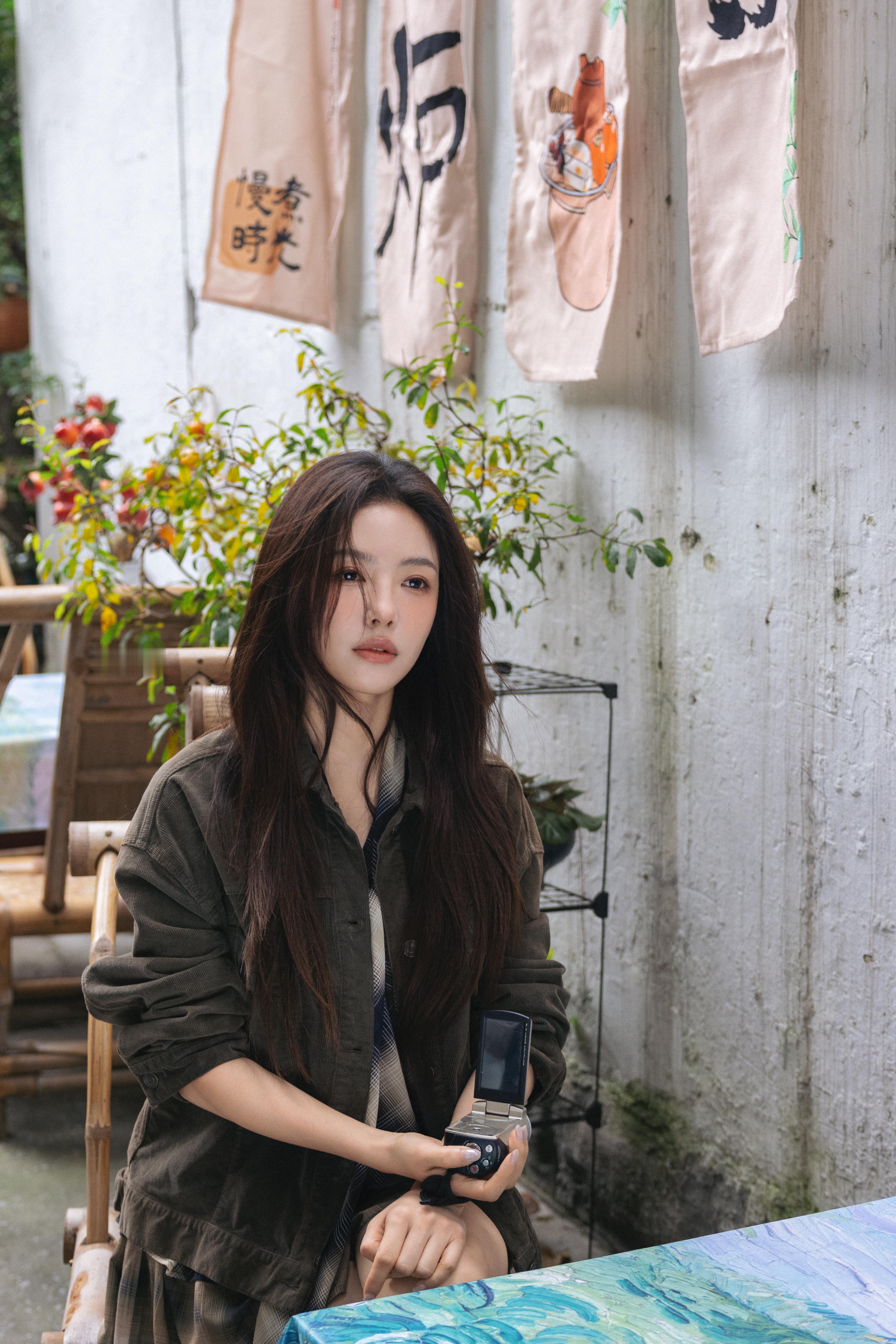 王玉雯穿中学生校服的样子。