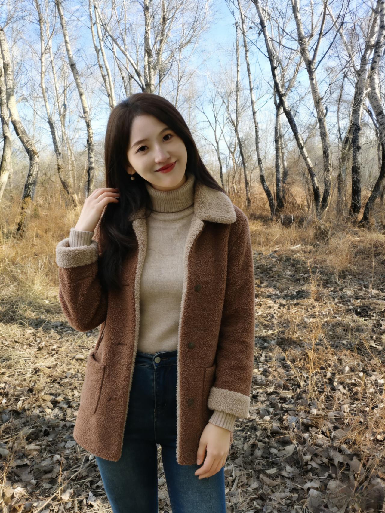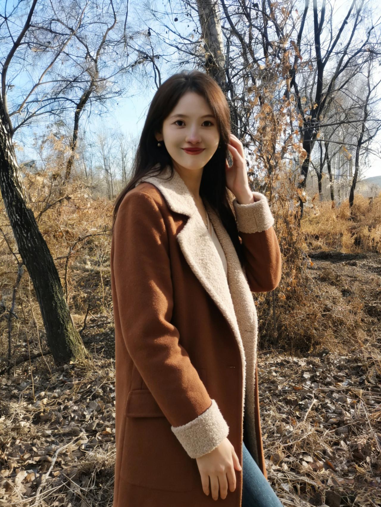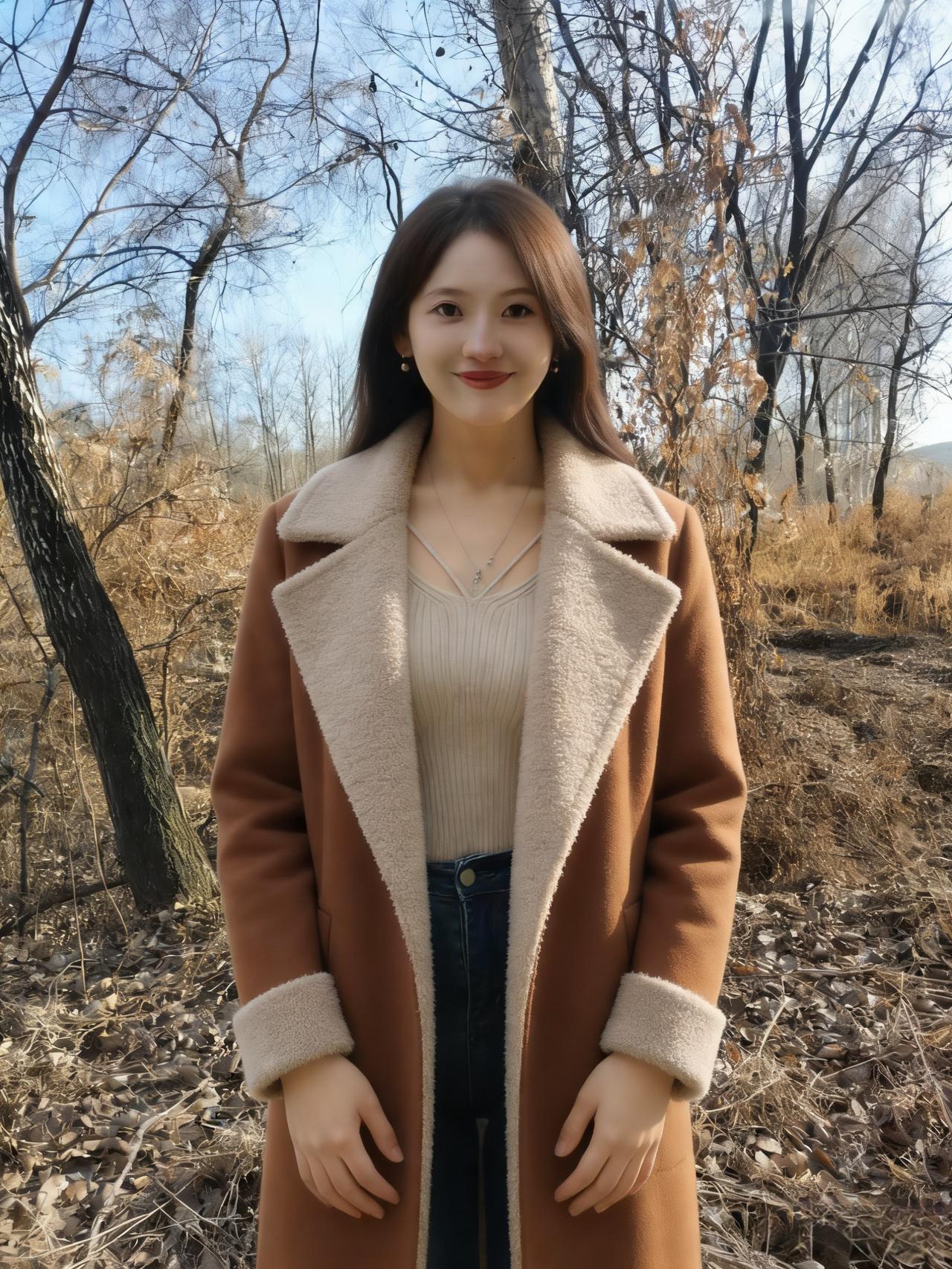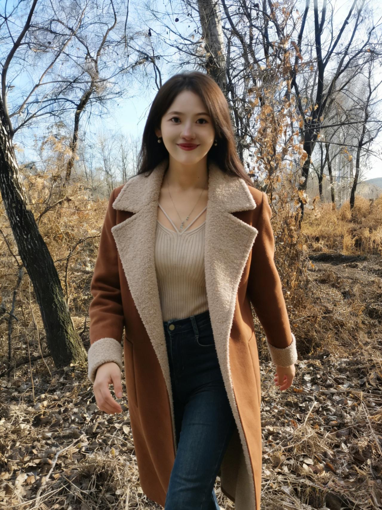 枯树的枝桠伸向天空 她的身影,是林间温暖的序章 针织衫的纹路,牛仔的粗粝 撞出秋末最温柔的质感