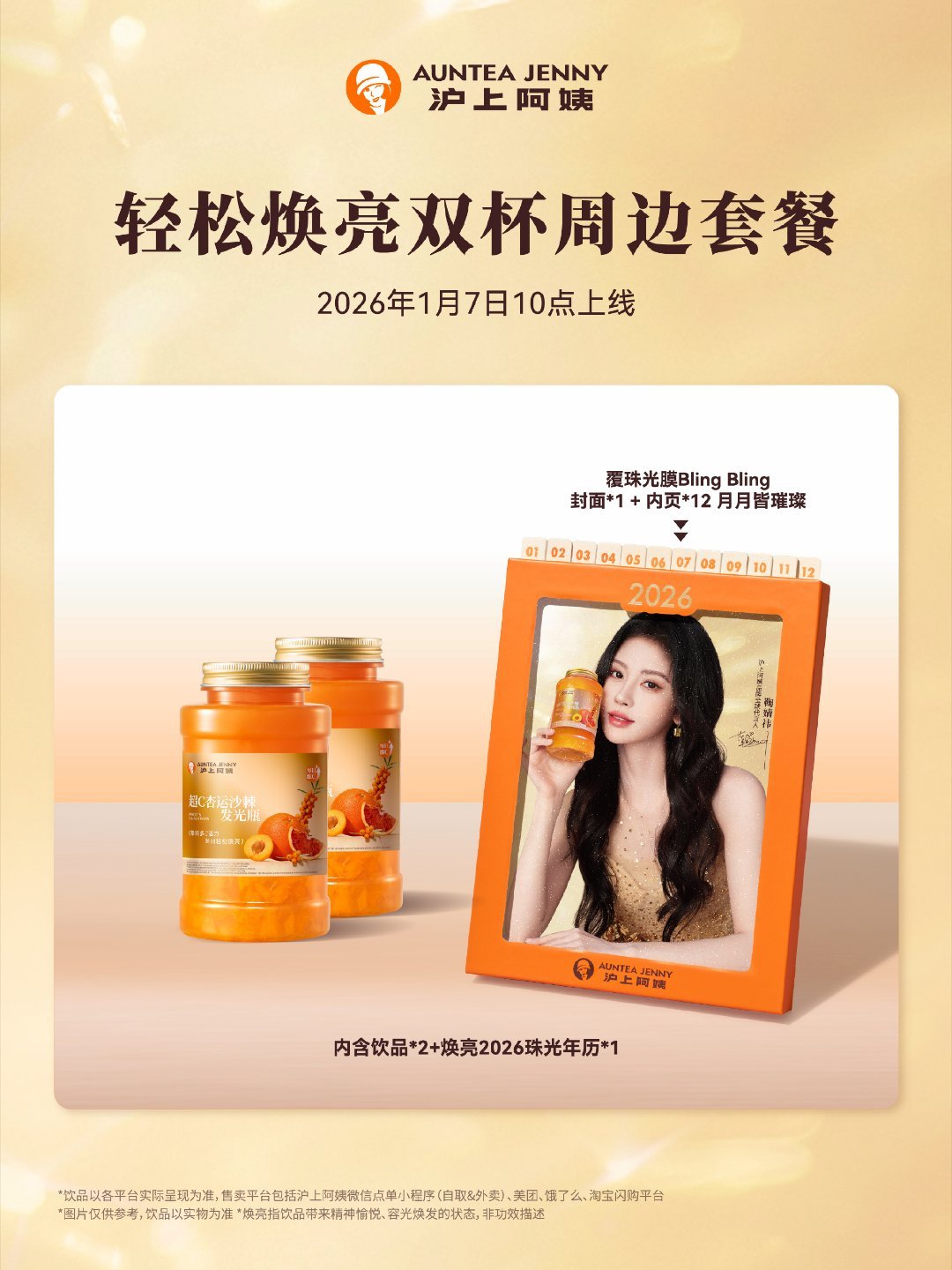 沪上阿姨品牌全球代言人鞠婧祎 鞠婧祎同款发光瓶封神!沪上阿姨这波联名我直接锁死✨作为追了小鞠多年的粉丝,看到她官宣沪上阿姨首位全球代言人时,我直接激动到原地转圈!蹲了好久的联名新品「超C杏运沙棘发光瓶」终于上线,亲测喝一口就沦陷,这波必须把种草理由说透~🌟颜值即正义!拿在手里就是行走的发光体先夸爆这个瓶身设计!通透的瓶身装着琥珀色的果饮,阳光底下真的会呈现出自然的“发光”效果,像把一整个冬日暖阳装进杯子里☀️ 搭配印着鞠婧祎签名的专属杯套,黑白简约风超有质感,不管是举在手里拍还是放在桌面俯拍,都自带氛围感滤镜,发朋友圈秒获20+赞。我特意试了不同场景拍照:办公室窗边、街边长椅、咖啡店桌面,随便怎么拍都出片,完全不用费心找角度。冷饮版本的冰雾附着在瓶壁上,透着淡淡的橙黄色光晕;热饮冒着氤氲热气,暖乎乎的色调超适合冬日打卡,不愧是为拍照而生的饮品~🥤三重高维C暴击!冬日健康饮品天花板作为养生党,最打动我的还是它的硬核成分!内蒙古沙棘+四川血橙+新疆金杏的神仙组合,每一口都喝得到天然果香。沙棘的维C含量竟然是柠檬的9倍,单瓶VC≈5个柠檬,相当于喝一杯就补够全天所需维C,黄黑皮和熬夜党直接狂喜✨口感真的惊艳到我!酸甜平衡得恰到好处,沙棘的微酸、血橙的清甜和金杏的果香融合得超和谐,完全没有工业糖浆的甜腻感。底部的蜜制杏丁是点睛之笔,嚼起来软糯有嚼劲,丰富了口感层次,喝到最后都忍不住把杏丁吃完。冷热饮都值得冲!冷饮清爽解腻,果香更突出,适合搭配火锅、烤肉;热饮暖乎乎的,入口温润不烫嘴,冬天揣在手里,既能暖手又能补维C,简直是通勤必备的“活力源泉”。🎁限定周边太会了!粉丝党必冲福利沪上阿姨这波周边诚意直接拉满,1月7日上线的限定款每个都想拥有!最让我心动的是「焕亮2026珠光年历」,里面藏着12张鞠婧祎的全新造型明信片,有甜妹风、御姐风还有Q版形象,每一张都颜值爆表。只要买“冬日闪耀双杯套餐”就能get,我已经和闺蜜拼单拿下,放在书桌上当装饰,每天看一眼都心情变好~「祎祎」发光立牌更是神仙周边!亚克力烟花背景搭配USB底座,点亮后氛围感拉满,限量30个/店,仅150家指定门店兑换。我特意提前查了附近的指定门店,小程序下单指定套餐就可以兑换,放在床头当小夜灯,简直是粉丝专属的浪漫。还有隐藏福利!现在买新品就送定制杯挂,小巧精致还能当钥匙扣,我已经收集了两个不同款式,据说限量100万个,手慢无~ 外卖点双杯还会默认送保温袋,冬天喝热饮再也不怕变凉,细节真的太贴心了。💡点单攻略&饮用场景推荐- 甜度建议:正常糖刚好,喜欢清爽口的可以选五分甜,完全不影响果香- 温度选择:日常通勤选热饮,搭配火锅选冷饮,两种口感都不踩雷- 搭配技巧:单喝就很绝,搭配面包、小蛋糕当下午茶,解腻又开胃- 周边获取:小程序提前查看指定门店,发光立牌数量有限,建议早冲;年历套餐适合和朋友拼单,性价比超高从颜值、口感、成分到周边,这杯鞠婧祎同款「超C杏运沙棘发光瓶」都做到了无可挑剔。既能喝到健康的高维C饮品,又能get偶像周边,粉丝党和饮品爱好者都能满足。现在每天一杯已经成为我的习惯,喝完整个人都透着自然好气色,冬日焕亮的小秘密全靠它~还没试过的姐妹赶紧冲,限定周边数量有限,别错过和小鞠「祎」起集结多C活力的机会呀!