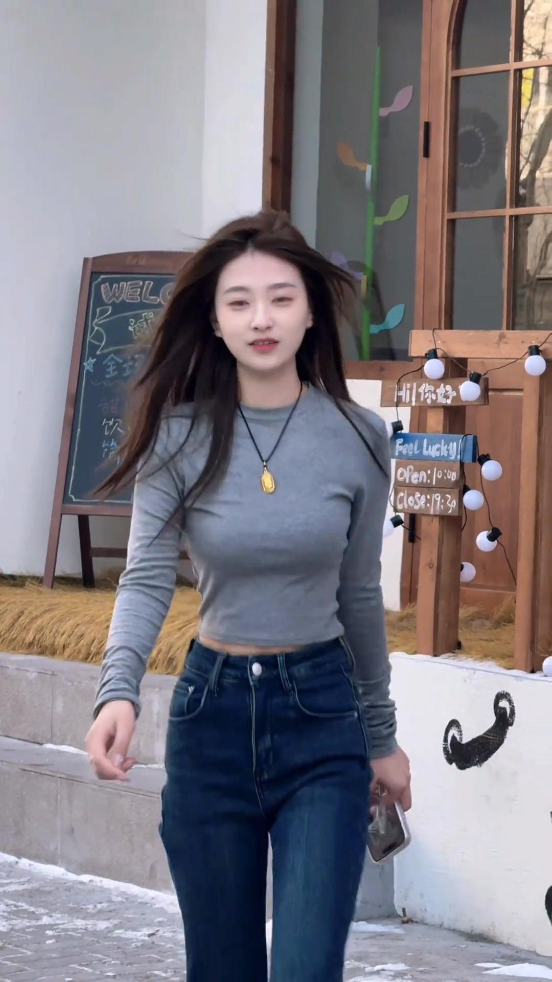 风拂长发,步履轻盈。