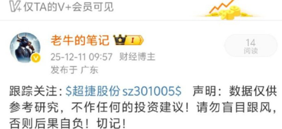 12月11日早盘跟踪关注的:超捷股份 股价今天再创新高,自分享以来,股价已经实现翻倍了!实力无需多言!认可老牛实力的朋友,来一波 点赞评论 888 !金价