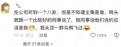 在公司听到一个八卦,但是不知道主角是谁,转头就跟一个比较好的同事说了,我同事说他们说的应该是我,我头顶一群乌鸦飞过