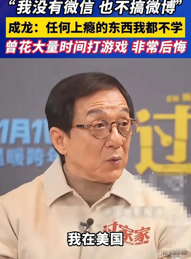 成龙有段话说的真好,任何上瘾的东西他都不学,他没有微信,也没有微博。曾在美国花