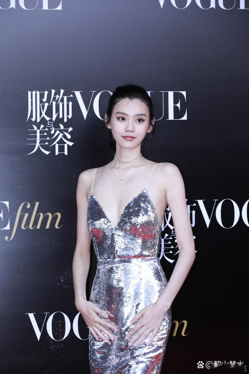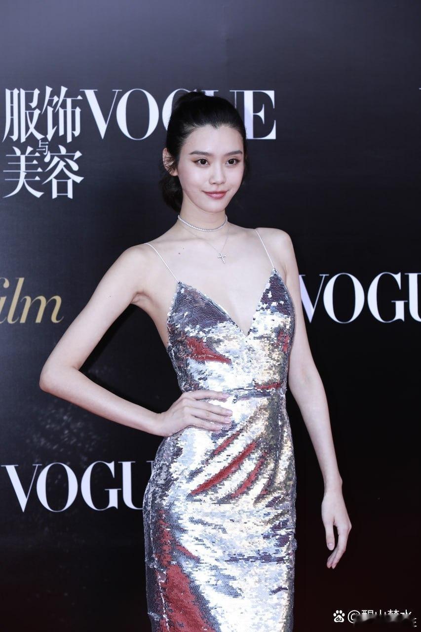 奚梦瑶VOGUE时尚盛典红毯花絮照片,深V露胸吊带装!