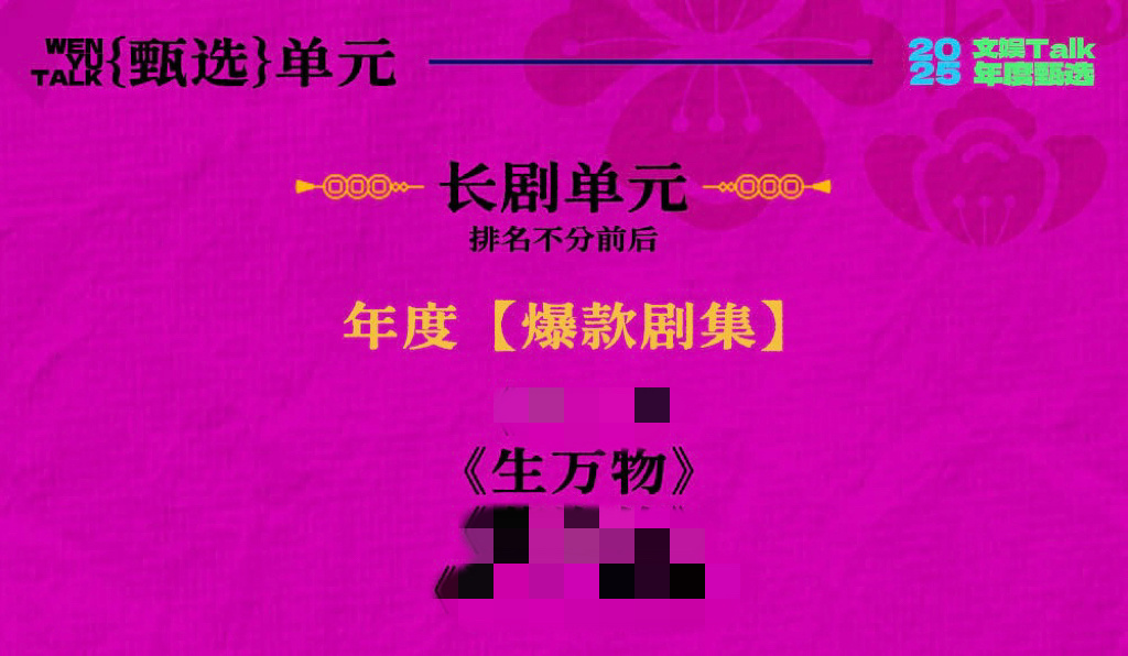 文娱Talk2025年度甄选杨幂生万物 《生万物》又获得长剧单元年度【爆款剧集】