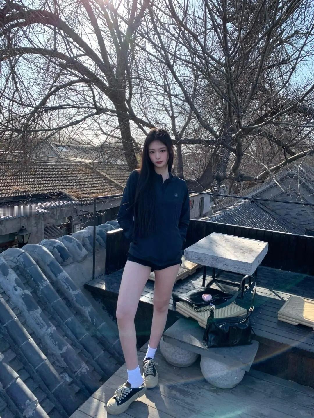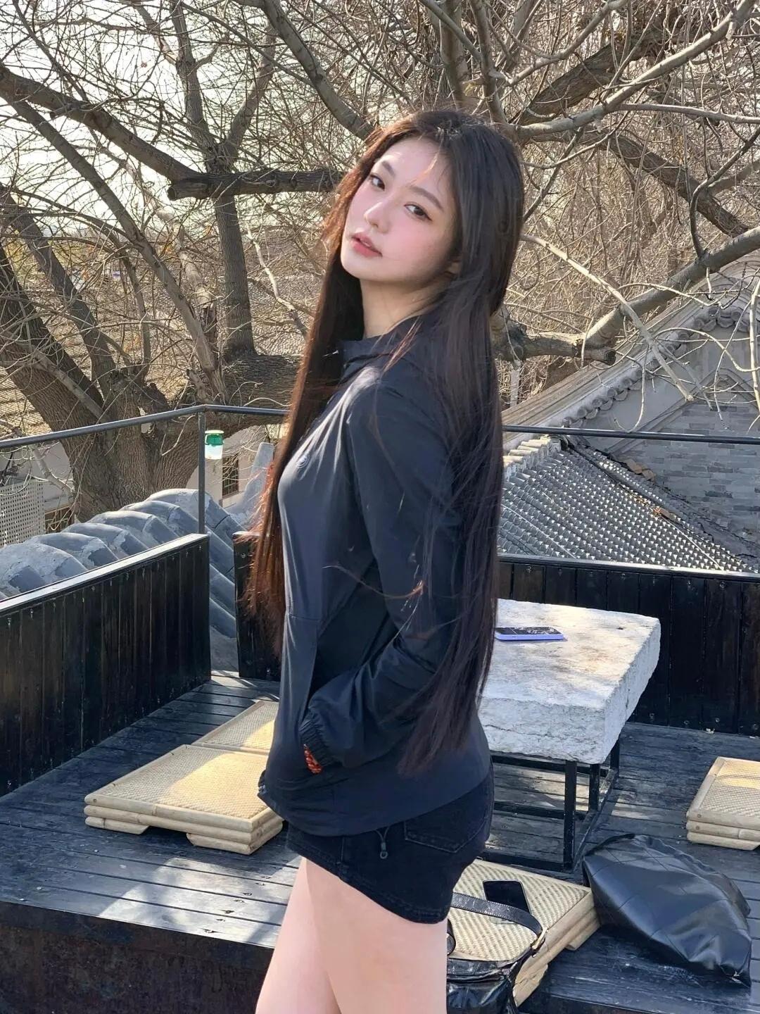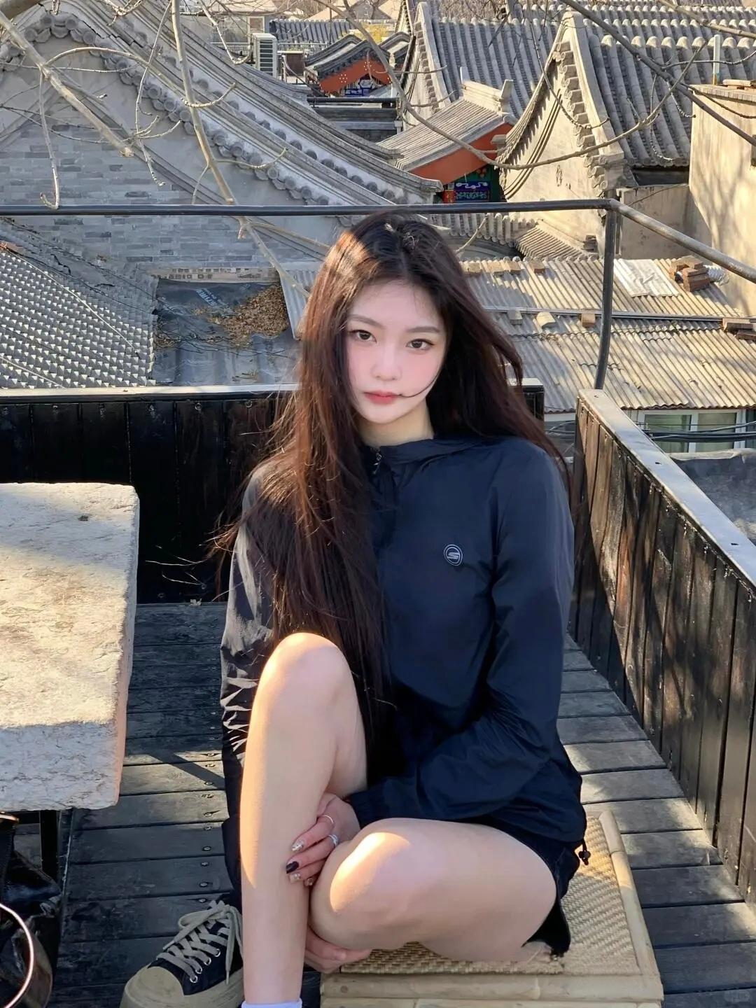 黑色连帽卫衣搭配大长腿,简约又时尚!