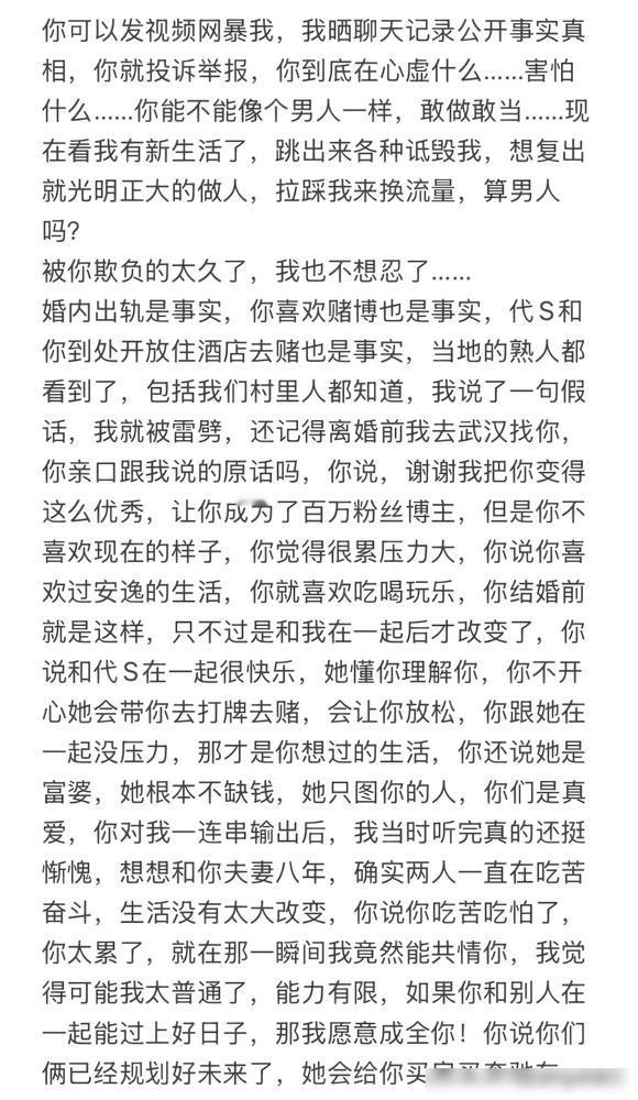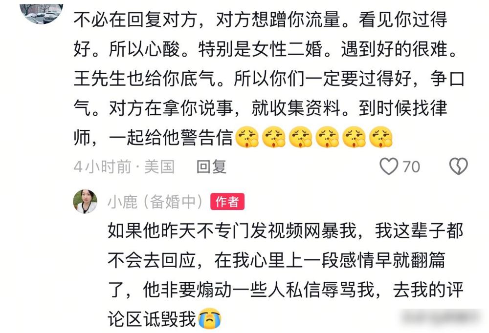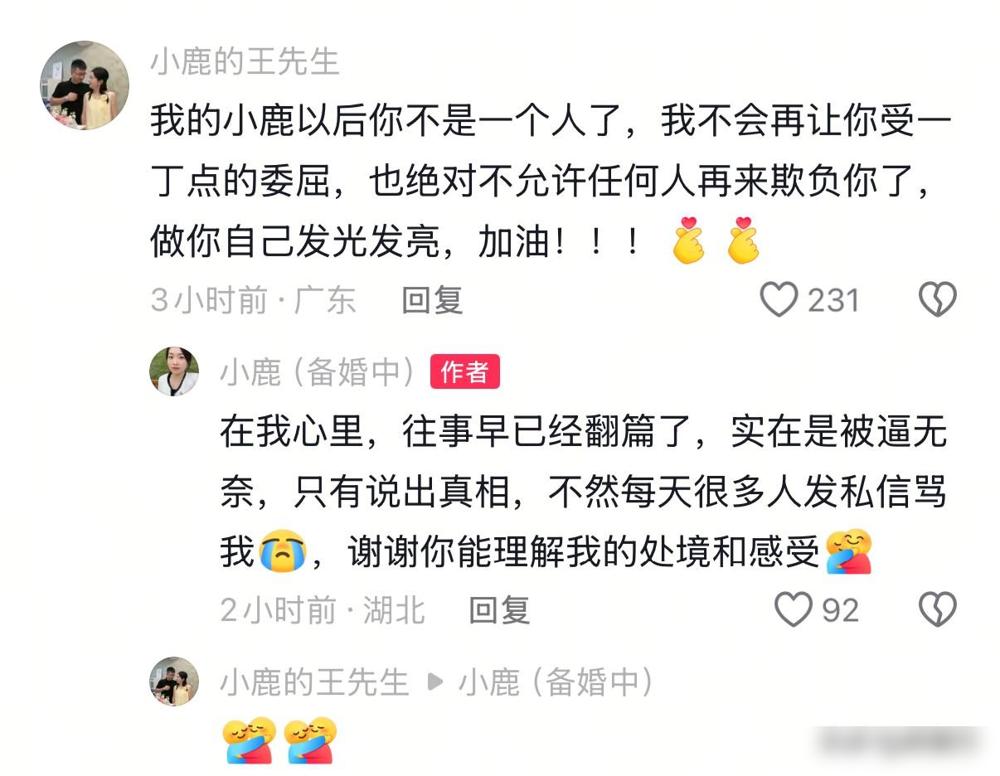 小鹿终于不忍,公开曝光前夫的所作所为,公婆一番话让人寒心,希望未来各自安好! 本来大家已经各自安好很多年了,结果前夫安哥突然单方面发视频开撕,说了很多针对小鹿的负面言论。小鹿昨天刚回应就被迫下架了视频,今天她干脆再次更新,把前夫和前公婆那些让人心寒的底细全揭开了。 说实话,如果不是对方步步紧逼,谁愿意把几年前的旧伤疤重新揭开给外人看呢? 我感觉最让人无语的还是那种“见不得前任好”的心态,毕竟小鹿现在事业做得风生水起,和现任也订婚了。 明明现在的小家庭过得其乐融融,却偏偏要在这个节骨眼上被前任跳出来搅和,这种行为真的挺掉价的。 尤其是前公婆的态度,那种冷冰冰的话听着都觉得心凉,可能在某些人眼里,过去的儿媳妇永远只是个外人吧。 最戳我的一点是,小鹿的回应视频居然还会被投诉下架,这操作多少有点欲盖弥彰的意思了。 这种想让对方闭嘴的做法,反而证明了有些事实可能真的戳到了某些人的痛处。 好在小鹿现在身边有能遮风挡雨的人,自媒体事业也经营得相当不错,这大概就是面对纠缠最有底气的反击。 真心觉得,既然多年前就选择了分开,就该体面地待在彼此的黑名单里,而不是为了那点流量或者不甘心去毁掉别人的新生活。