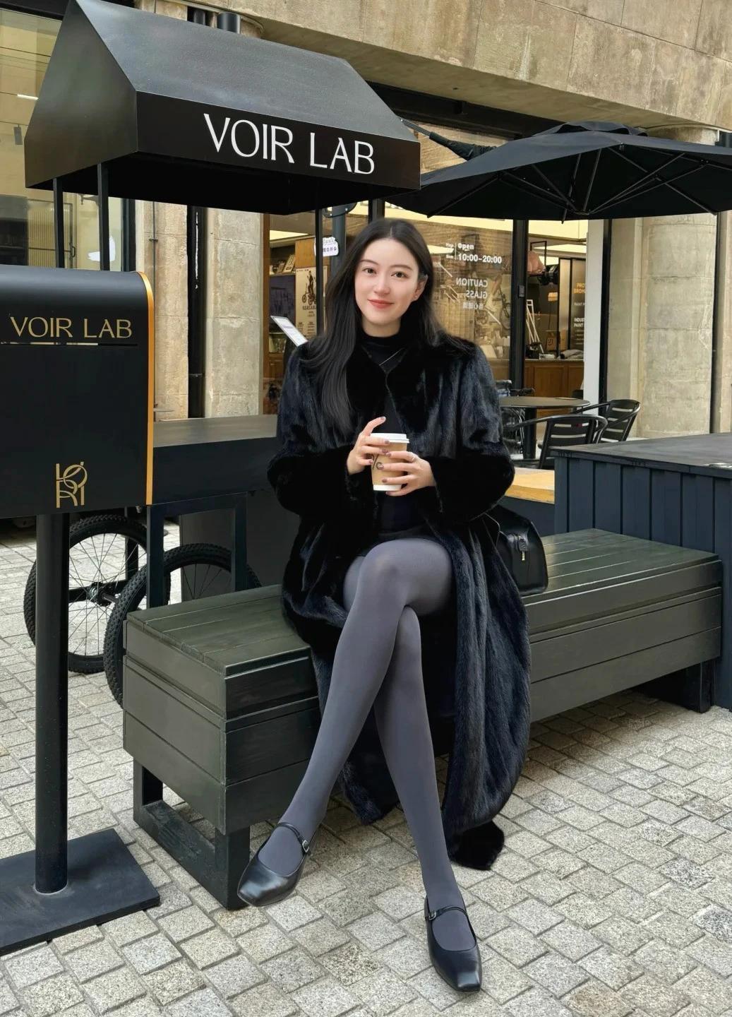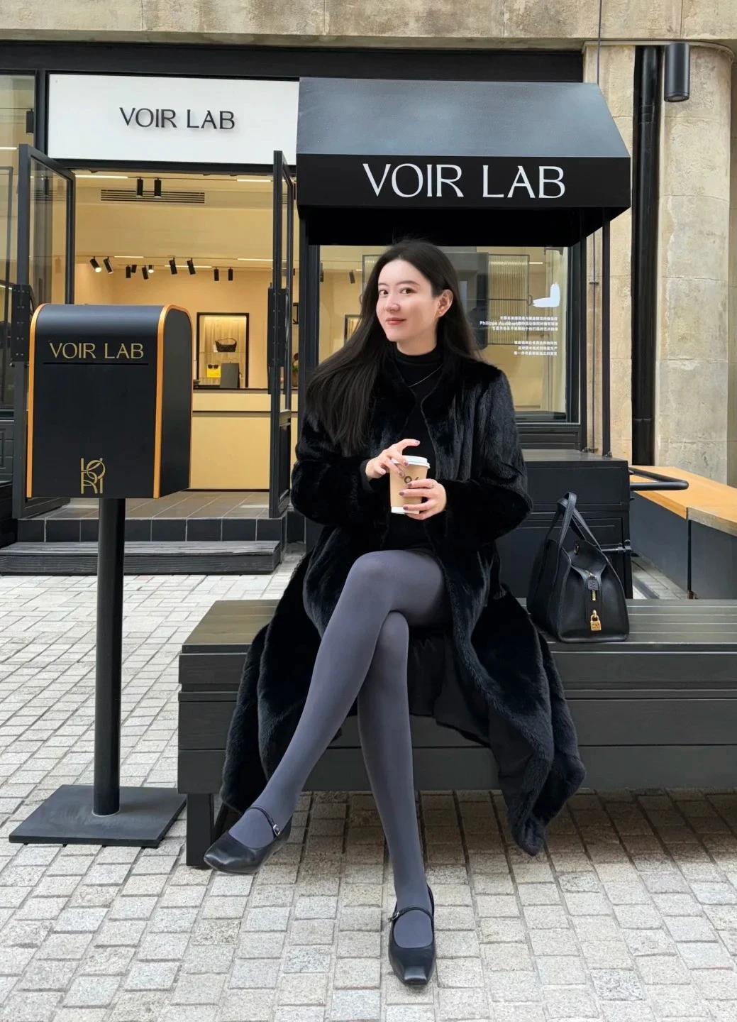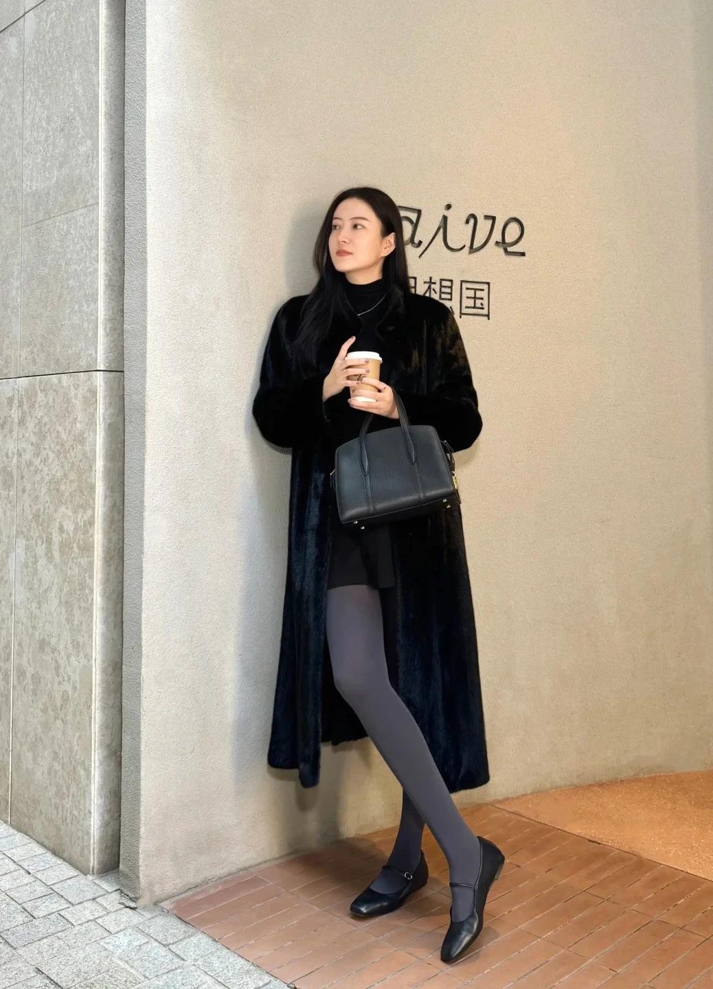 冬日穿搭指南:黑色大衣+灰色丝袜,优雅又保暖