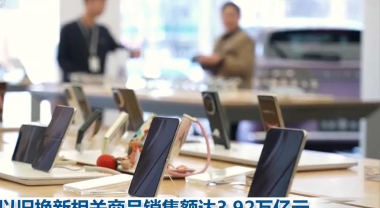 汽车生产车间里生产线高速运转,新车整齐排列尽显工业实力;4S店内顾客仔细查看车辆,家电卖场中工作人员讲解冰箱性能,数码柜台摆满新款手机。清洁家电演示着便捷功能,旧车拆解车间有序作业,以旧换新相关商品销售额达3.92万亿元,消费市场焕发出强劲新活力!