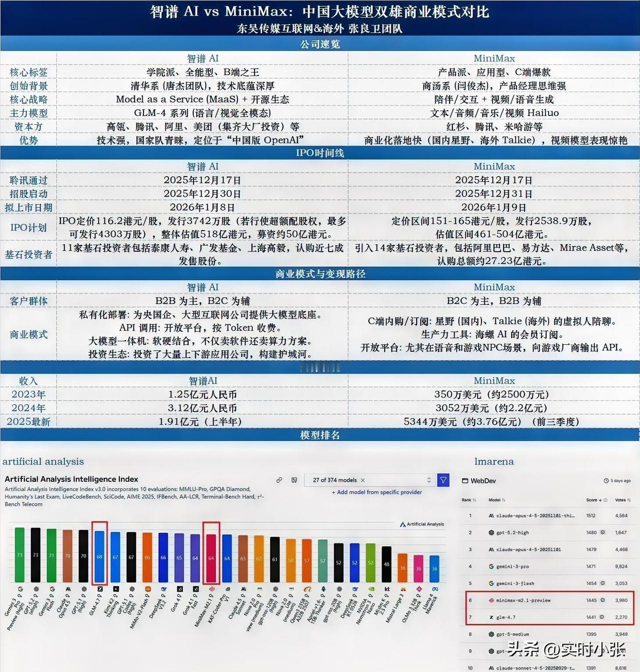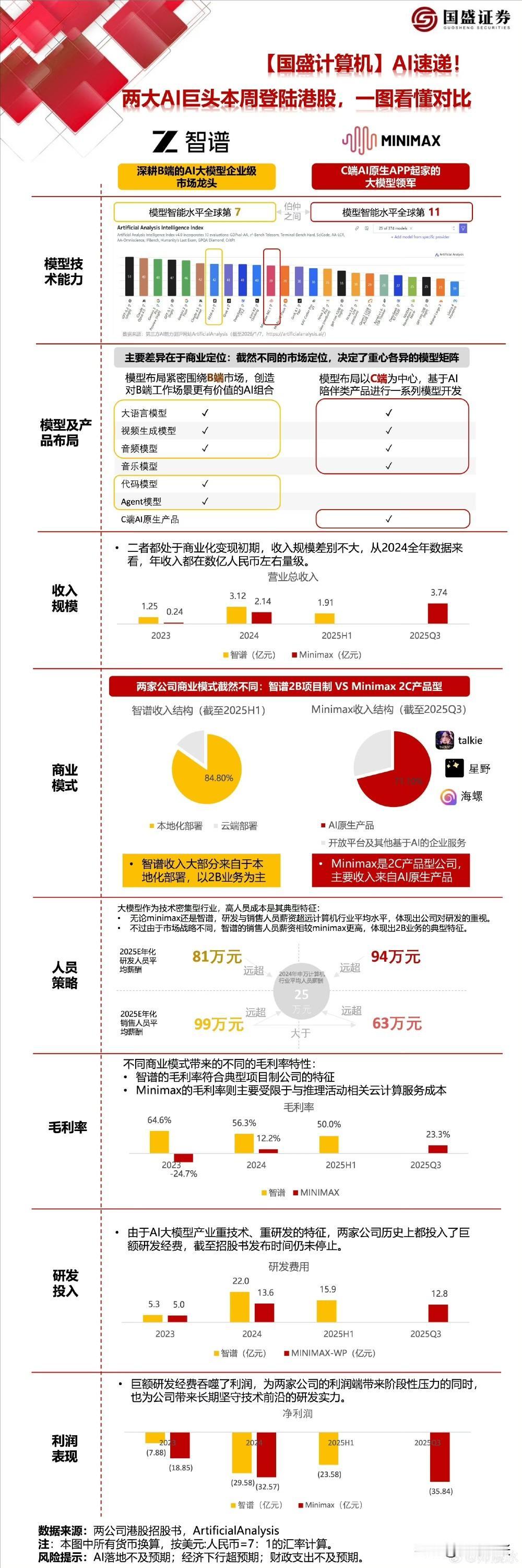 国产AI大模型双雄即将登陆港股!1月8日智谱华章、1月9日Minimax相继挂牌,发行价分别为116.20港元、165港元,募资均超40亿港元。二者在技术研发、商业化路径上各有侧重,背后还牵扯着凌云光、电广传媒、视觉中国等A股上市公司,特别是视觉中国都参股了知谱和Minimax !下图中有介绍知谱与 Minimax 两家公司对比图, 在这场AI大模型的资本角逐,值得持续关注!