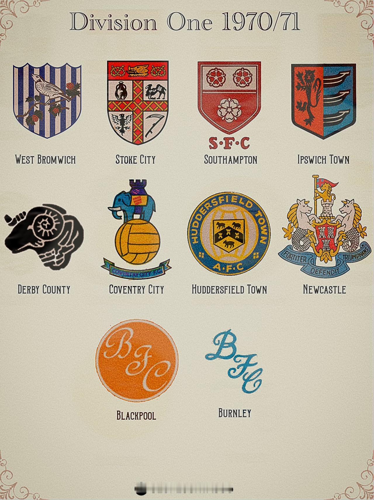 英超前身,英甲联赛,各支球队的老队徽,哪个球队的队徽是最好看的呢。