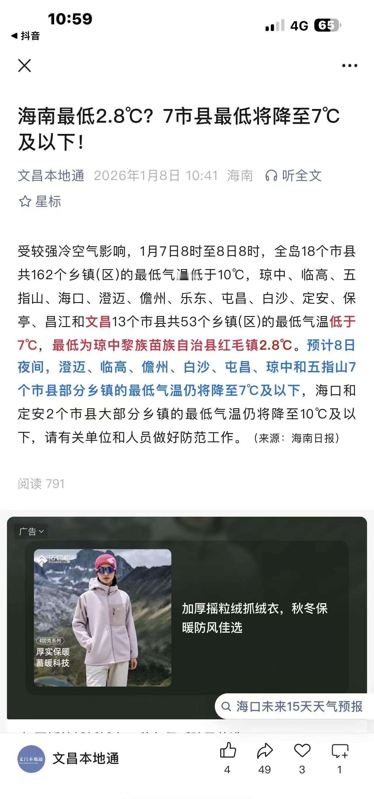 大家都备好棉袄了没上热门 冷空气海南岛最新公告