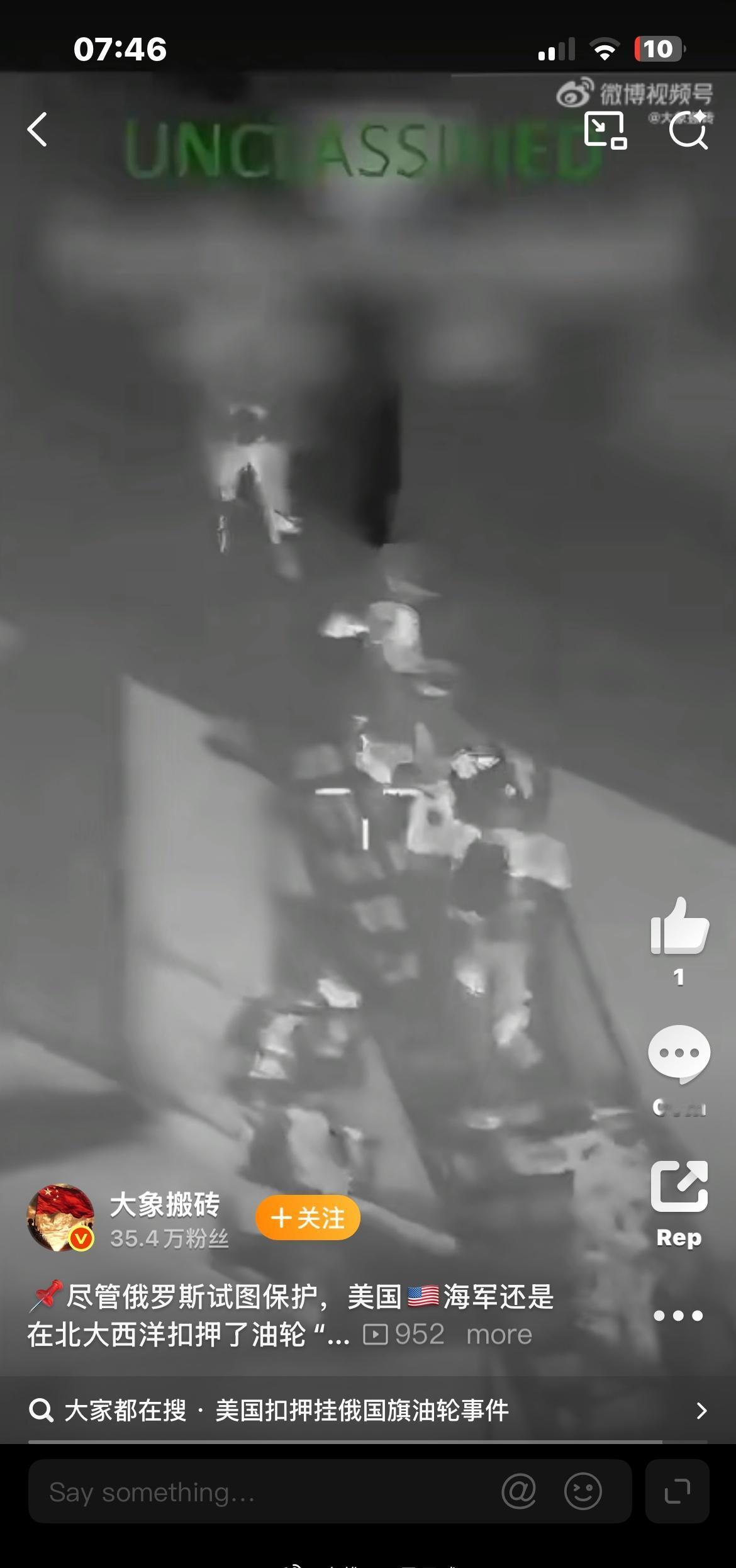 在俄罗斯核潜艇的注视下,美国直升飞机带着士兵空降控制了俄罗斯的邮轮,这个现象至少在我的记忆中没有发生过!这也许是美俄之间军事对抗的一个转折点,希望俄罗斯小粉红也记住这样的耻辱瞬间……俄罗斯[超话]美军扣留俄罗斯油轮