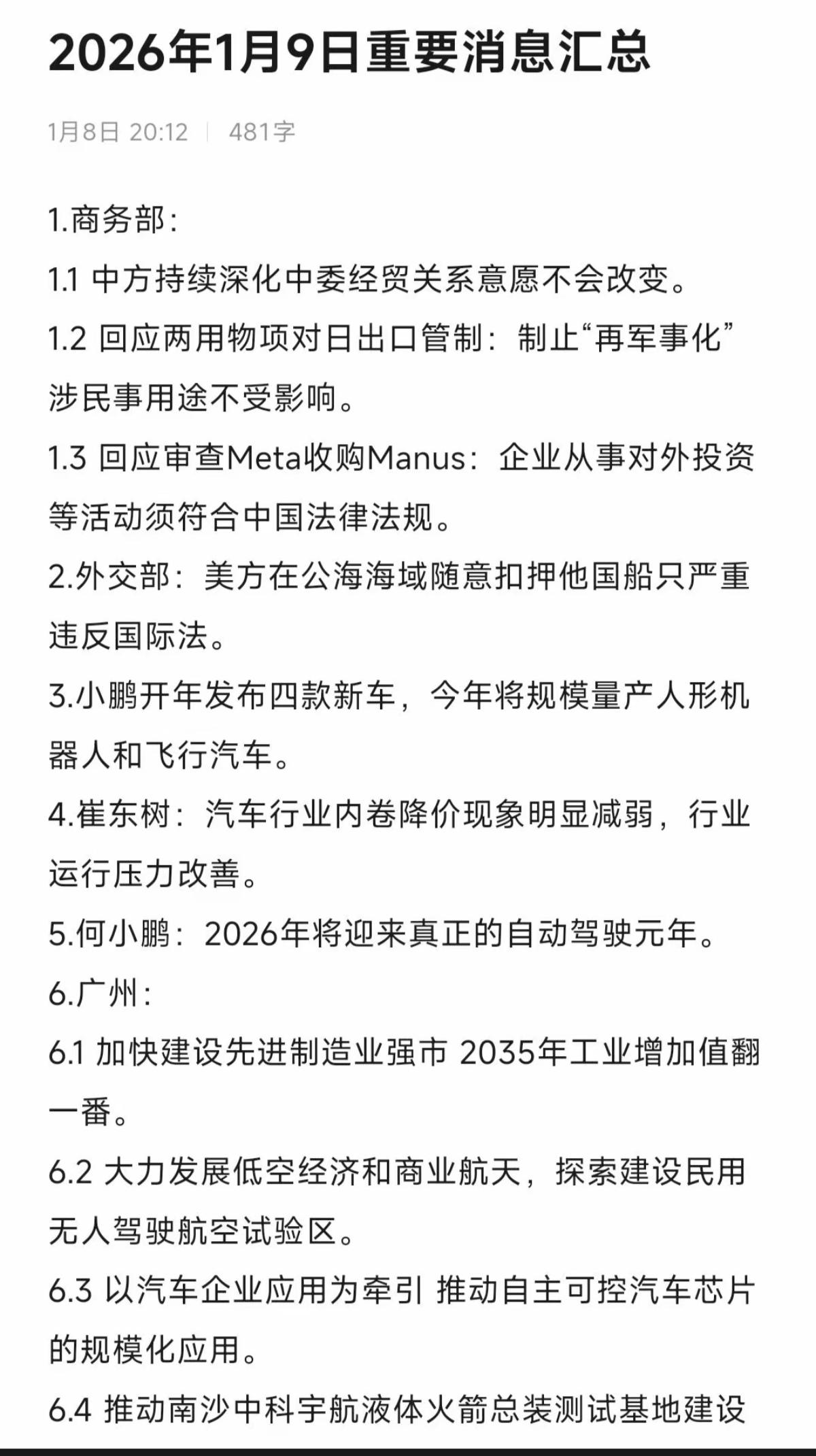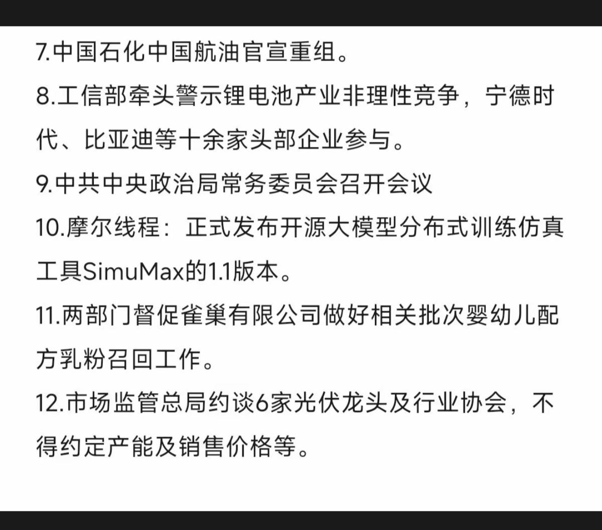 1.09周五 重要 财经消息汇总! 1.小鹏机器人 2.无人驾驶 3.低空经济+商业航天 4.中国石化中国航油重组 5.摩尔线程 6.光伏