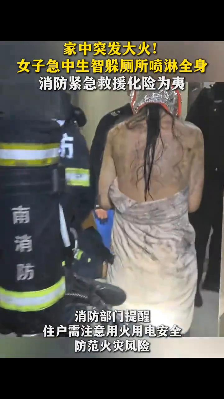 家中突发大火!女子急中生智躲厕所喷淋全身,消防紧急救援化险为夷。 1月8日,湖南长沙。2026年1月8日凌晨,长沙县一小区突发火情,消防部门接警后火速赶赴现场,开展灭火救援与人员疏散工作。目前火情已成功扑灭。 起火原因正进一步调查中。据邻居介绍,该女子最初躲在厕所里面用喷头喷淋自己,但她还是呛了大量的烟,现已去医院治疗。 消防部门提醒:住户需注意用火用电安全,防范火灾风险。