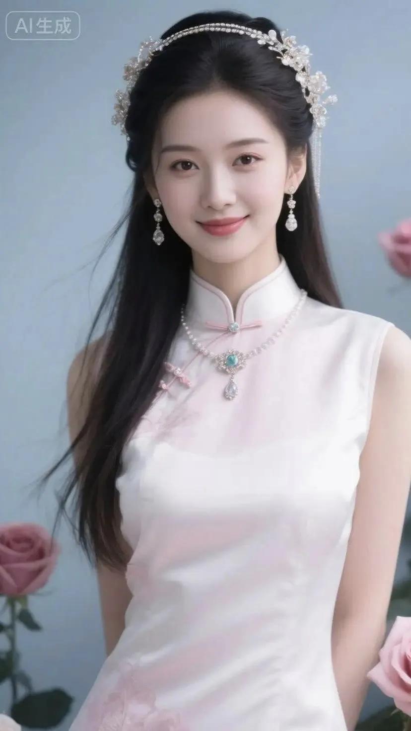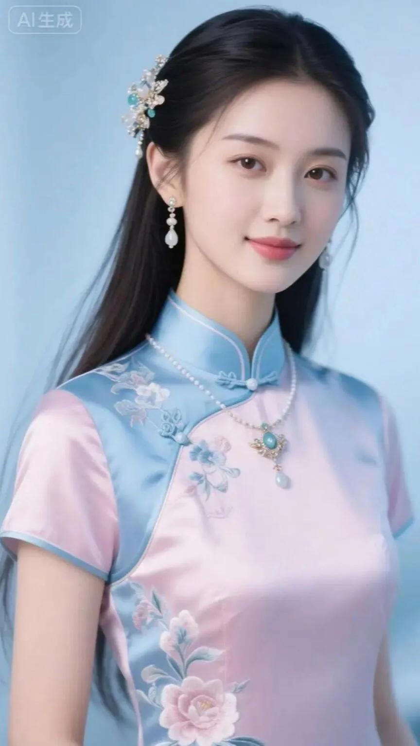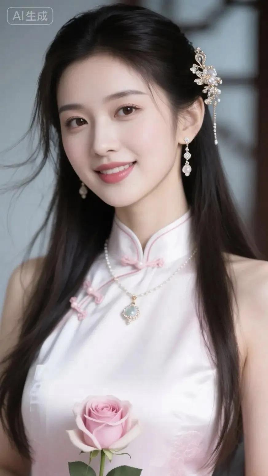 优雅旗袍少女,笑靥如花,粉嫩樱花映衬,尽显东方韵味。