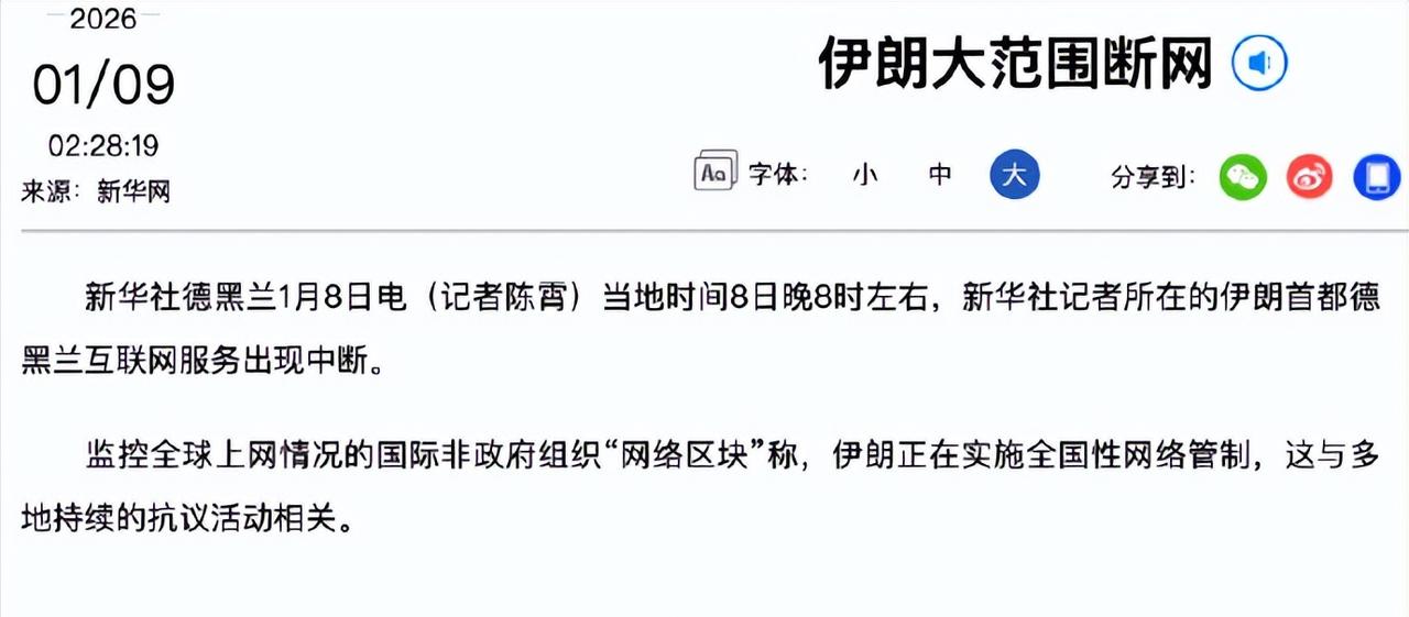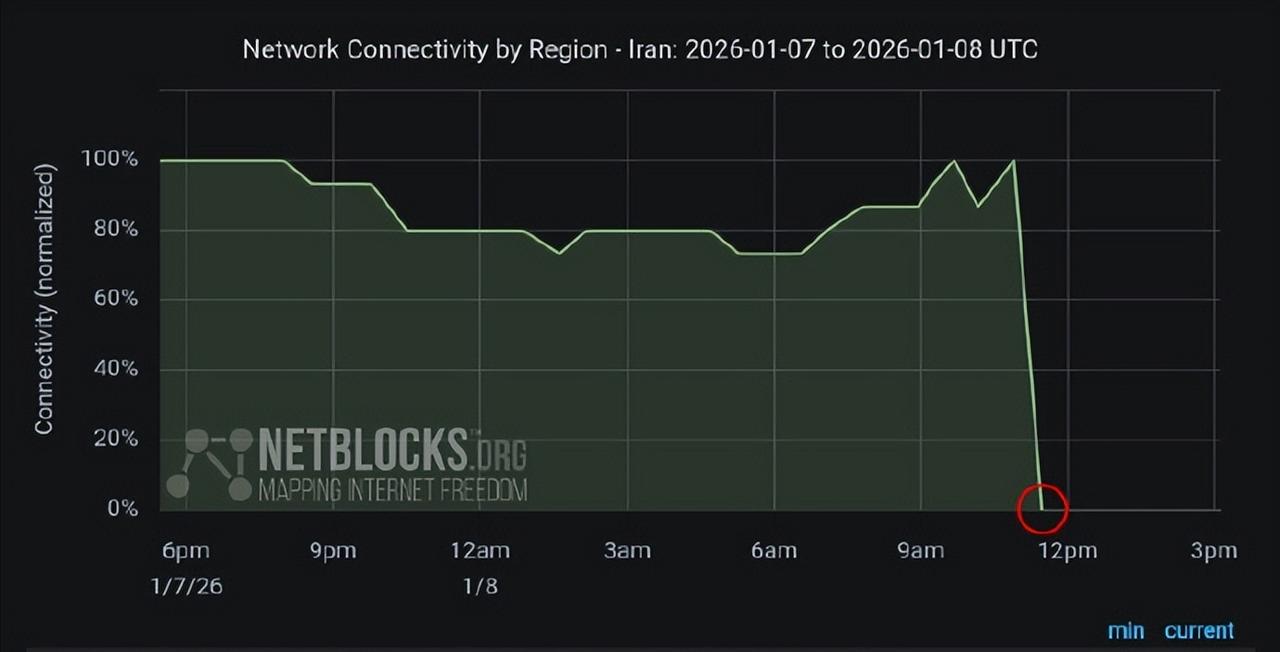 突发!伊朗断网了,特朗普:“我不需要国际法”。 当地时间1月8日晚,伊朗启动全国性网络管制, 首都德黑兰及多地互联网服务出现断崖式中断,移动网络近乎瘫痪,国际社会对此高度关注。 据网络监测机构 NetBlocks 证实,伊朗互联网连接数据于当日下午骤降,近乎完全中断,Cloudflare 数据显示与移动网络绑定的 IPv6 流量占比从 12% 暴跌至 1.8%,核心城市陷入 “数字封锁状态”。 此次断网与伊朗国内多重危机叠加直接相关。 自2025年12月下旬起,货币里亚尔暴跌至146万兑1美元,通胀率超42.5%,食品价格暴涨72%,叠加40年来最严重干旱,民众不满情绪爆发,抗议活动蔓延至 17 省逾百座城市,部分升级为暴力冲突,已致至少36人死亡。 而外部局势更因美国的介入愈发复杂,就在伊朗断网前一日,美国总统特朗普在签署退出66个国际组织的备忘录时,公然宣称 “我不需要国际法,美国的利益就是最高准则”,这番言论被解读为对其单边主义行动的直接注解。 特朗普政府近期一边以军事手段干预委内瑞拉、威胁夺取格陵兰岛,一边密集退出包括联合国气候变化框架公约在内的国际组织,其 “美国优先” 的霸权逻辑暴露无遗。 对于伊朗局势,美国虽未直接动武,却通过舆论施压等方式加剧地区紧张, 而特朗普对国际法的公然蔑视,更让外界担忧国际社会难以通过多边机制有效介入危机。 目前伊朗仅保留 “国家内网”(SHOMA)维持银行、政府等基本职能,但普通民众被隔绝于数字世界,银行转账等日常事务受阻,外界也难以获取当地实时信息。有网民呼吁 Starlink 提供接入,但受设备与外交风险限制,短期难有突破。 截至1月9日,伊朗官方尚未回应断网事宜,而特朗普的激进言论与单边行动,正让这场集经济困局、社会动荡与外部干预于一体的危机,成为冲击全球秩序的又一变量。