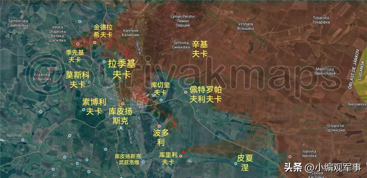 2026年1月7日-8日俄乌最新战报: 1.苏梅州前线: (1月7日): 过去一周里,俄军完全控制了安德里伊夫卡村,并在奥列克西伊夫卡村以南取得了新进展(图一)。 2.哈尔科夫州前线: (1月7日): ①过去五天里,俄军继续向普里利普卡村以西推进,并控制了通往布格鲁瓦特卡村的道路。 ②随着俄军重新占领斯塔里齐亚村东部地区,乌军被迫向南撤退(图二)。 (1月7日—8日): ①根据最新情报,季先基夫卡村现已落入俄军控制,数月前,该地可能处于灰色地带,这引发了外界对乌军在2025年12月收复邻近的金德拉希夫卡村后能否巩固其阵地的质疑(图三)。 ②近日,俄军在拉季基夫卡村附近和库皮扬斯克市东部工业区重新占据了阵地,这里曾是俄军侦察破坏小组的出击点,他们绕过库切里夫卡村,进入正在激战的波多利村(图三)。 ③俄军在沿皮夏涅村以北的常规越野路线进入了库里利夫卡村,但目前该村的局势仍不明朗(图三)。 3.索莱达尔方向前线: (1月7日): ①过去四天里,俄军在新马尔科韦村以南和明基夫卡村内取得了新进展(图四)。 ②俄军侦察破坏小组在扎利兹尼扬斯克村西北部扩大了行动范围(图四)。 4.顿河君士坦丁罗夫卡和恰索夫亚尔前线: (1月7日): ①过去一周,俄军夺回了顿河君士坦丁罗夫卡市东南部的墓地区域,并继续在相邻的林带展开行动(图五)。 ②俄军还开始对尼古拉耶夫卡村西北部的战壕发起进攻(图五)。 5.顿涅茨克州北部前线: (1月7日—8日): ①过去两天里,俄军在红利曼以东、以北和以南占领了一些阵地,同时继续对该市实施包围(图六)。 ②过去四天里,俄军占领了亚罗瓦村以北的林区,并从该地区西部发起进攻,穿过林区向南推进至北顿涅茨河畔的斯维亚托戈尔斯克镇(图六)。 6.第聂伯罗彼得罗夫斯克州前线: (1月7日—8日): 俄军向格拉西米夫卡村以北和西部推进,控制了布拉特西克村,并将作战行动扩展至新波列村(图七)。 7.扎波罗热州前线: (1月7日): 过去五天里,俄军在多罗日尼扬卡村以北地区取得了进展(图八1)。