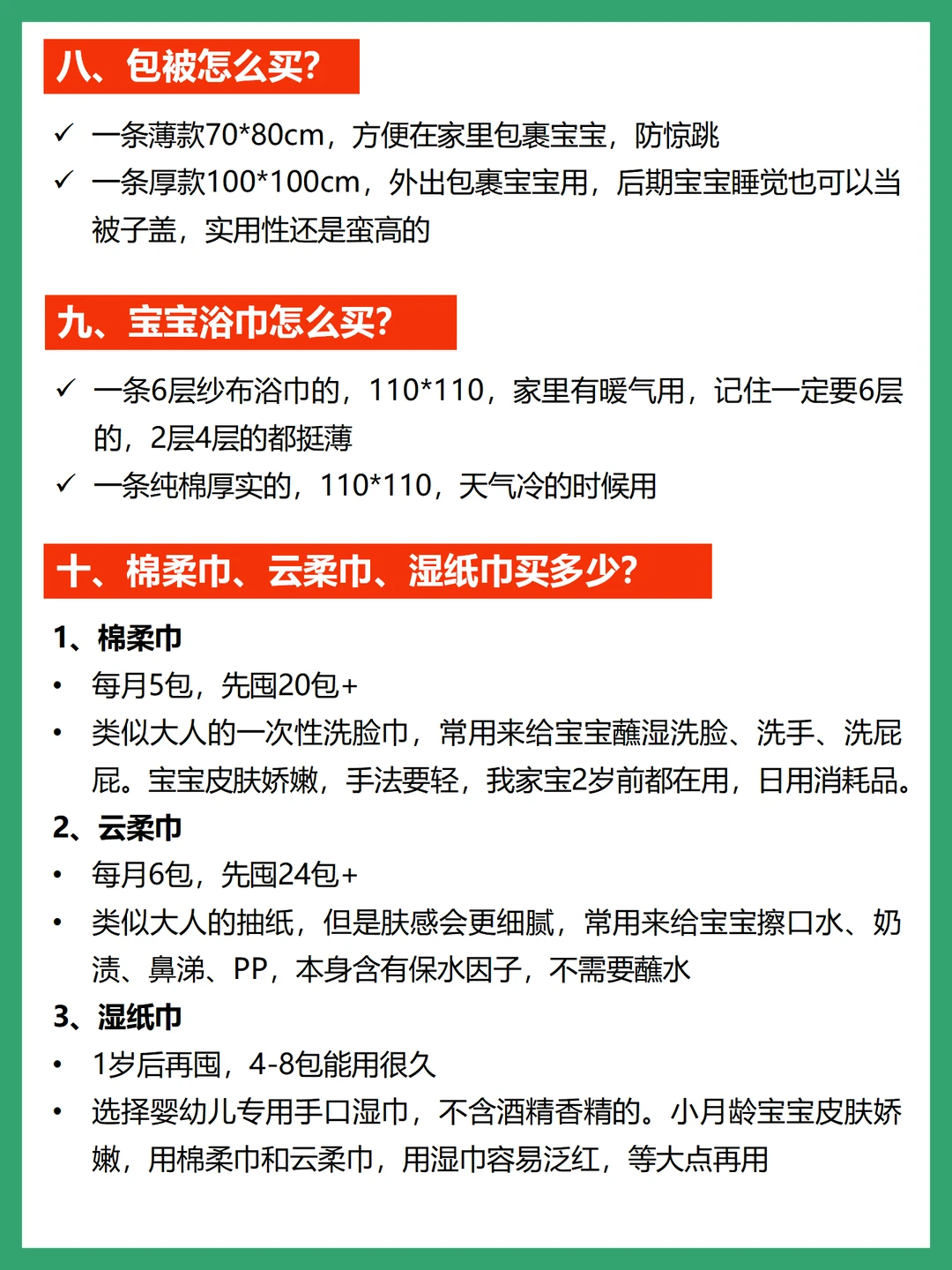 11、棉柔巾、云柔巾、湿纸巾买多少?