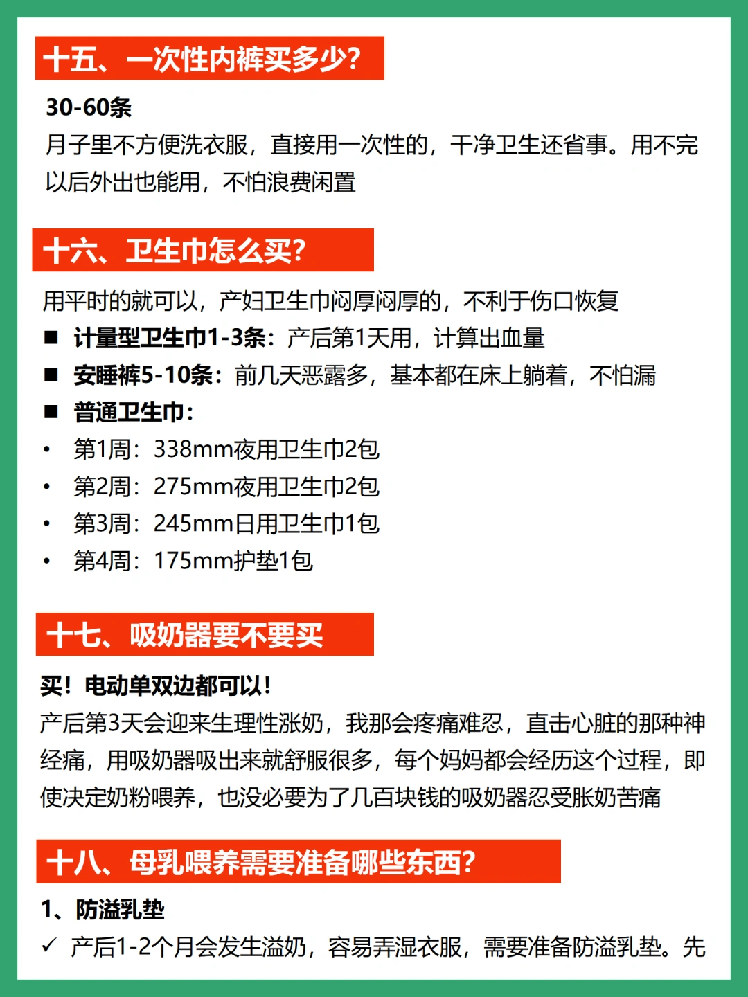 1⃣️防溢乳垫:先囤100片,不够了额外买,产后2-3个月奶水外溢现象会慢慢消失,不用一次囤太多哈!