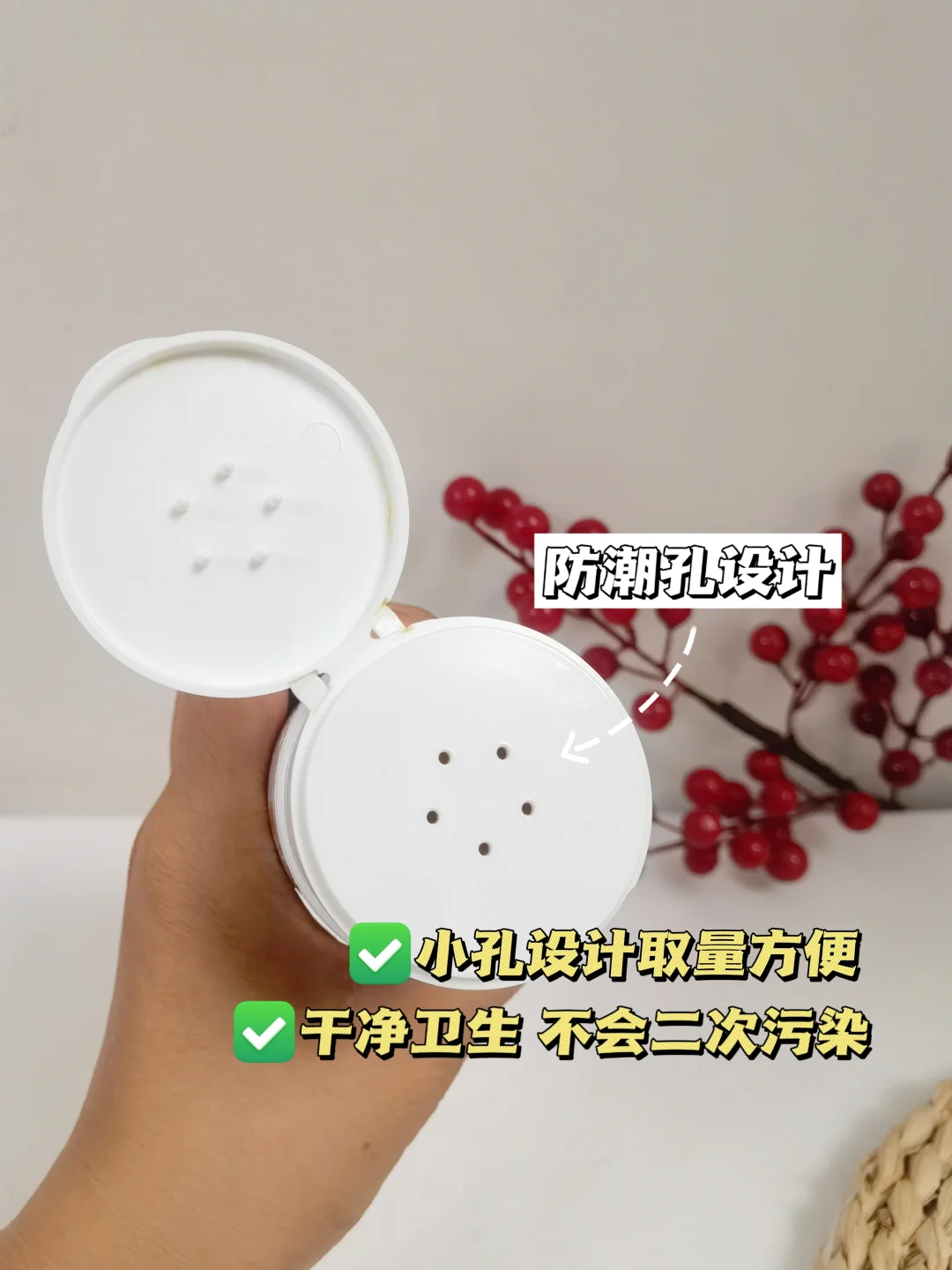 粉质很细腻,但是用的时候不会飞粉。吸湿性强,给宝宝👶🏻洗完澡🚿后就在容易出汗、褶皱肉肉多的地方抹上,皮肤很快就能干爽,没有汗液的刺激,皮肤一整天都是滑溜溜的~