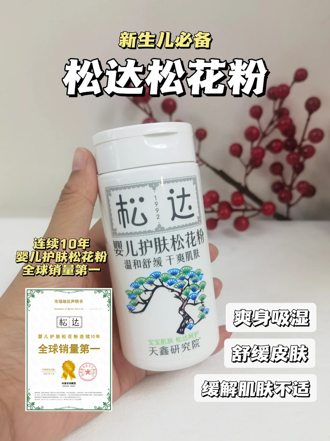 买过好几款爽身粉都不咋管用,后来还是一起坐月子的朋友给推荐了松达松花粉🌱,宝宝的皮肤问题才开始慢慢改善~