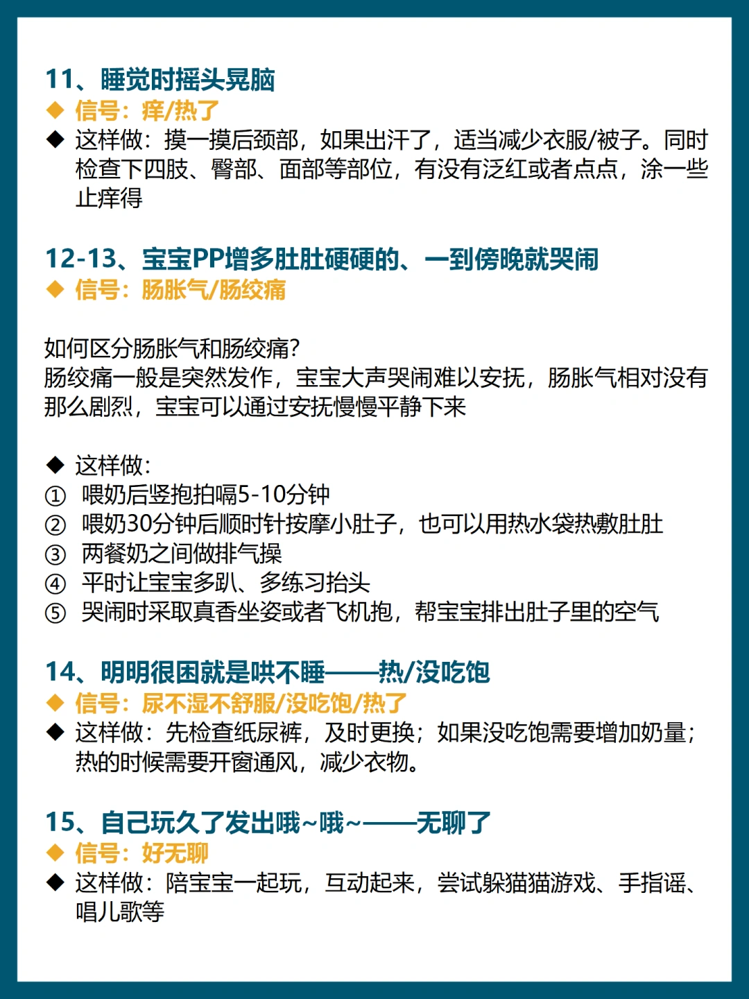 第一次当妈妈,谁懂那种无力感?!宝宝突然哭闹😫,究竟是为什么啊?为什么有时候粑粑是奶瓣状,有时候是稀糊糊?为什么夜里能夜醒五六次,会不会影响孩子生长?这篇整理了宝宝的这20个需求,弄明白这些,你会发现带娃其实很简单