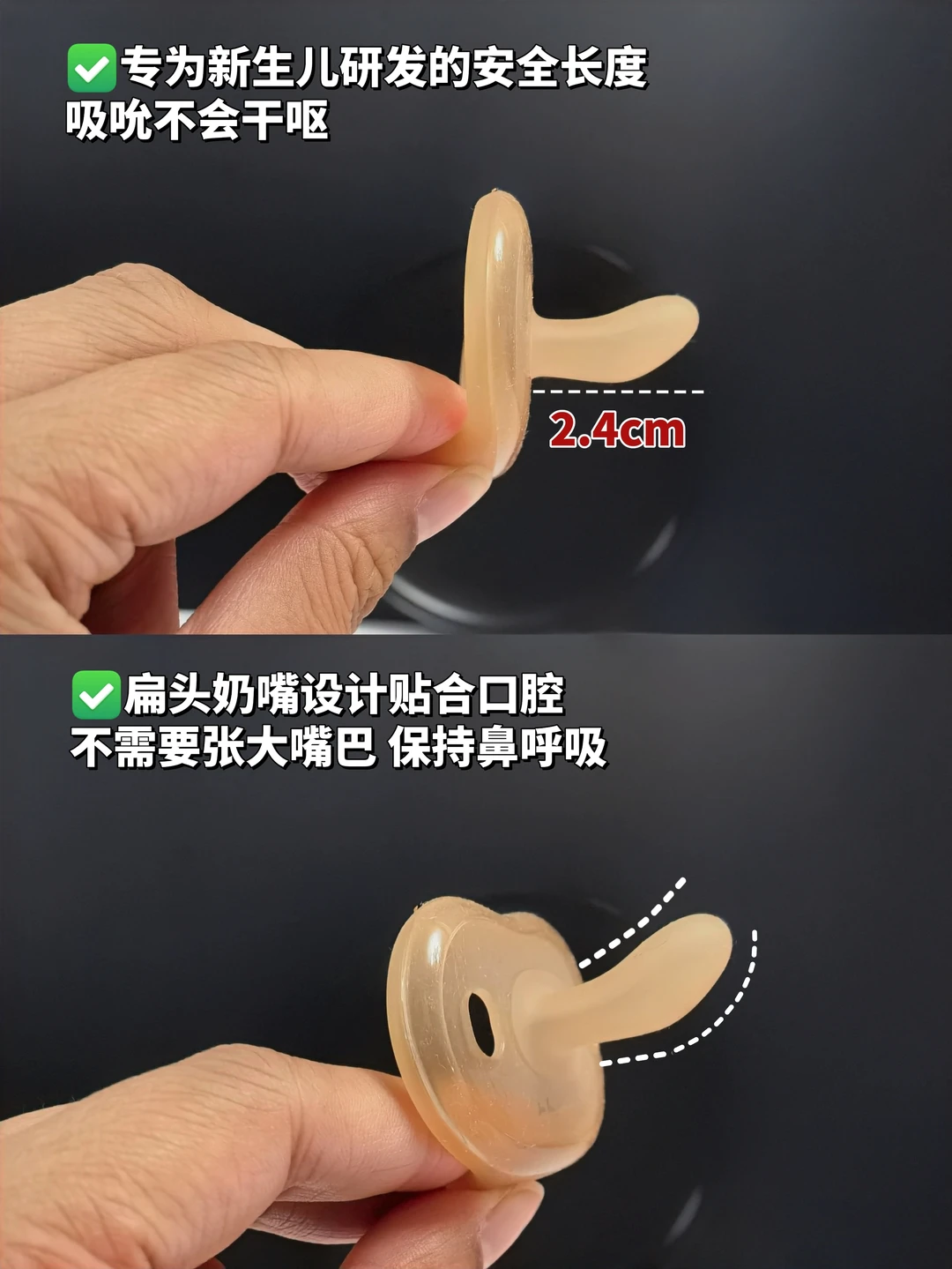 2.4cm的安全长度,吸吮不容易干呕~