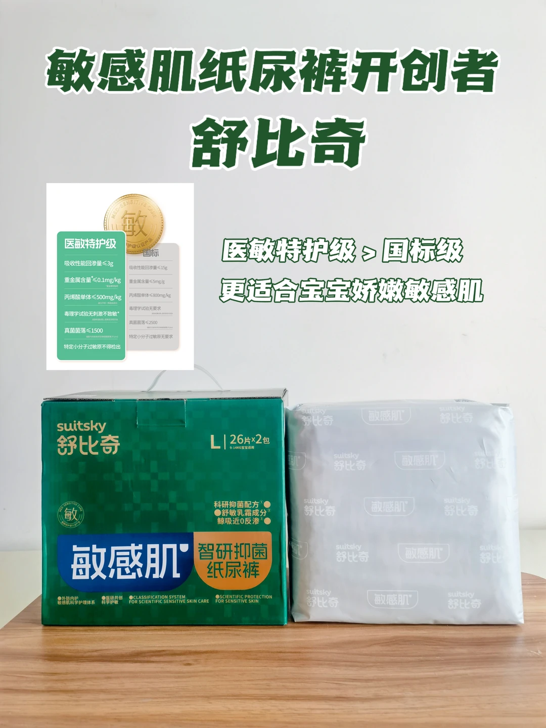 我给我家孩子用的是舒比奇智研抑菌纸尿裤,舒比奇的全系列产品都经过医敏特护级认证,高于国家标准,还是联合了百名皮肤科👩🏻⚕️共同研究的,他家的敏感肌纸尿裤,针对皮肤脆弱敏感的宝宝可以放心用!