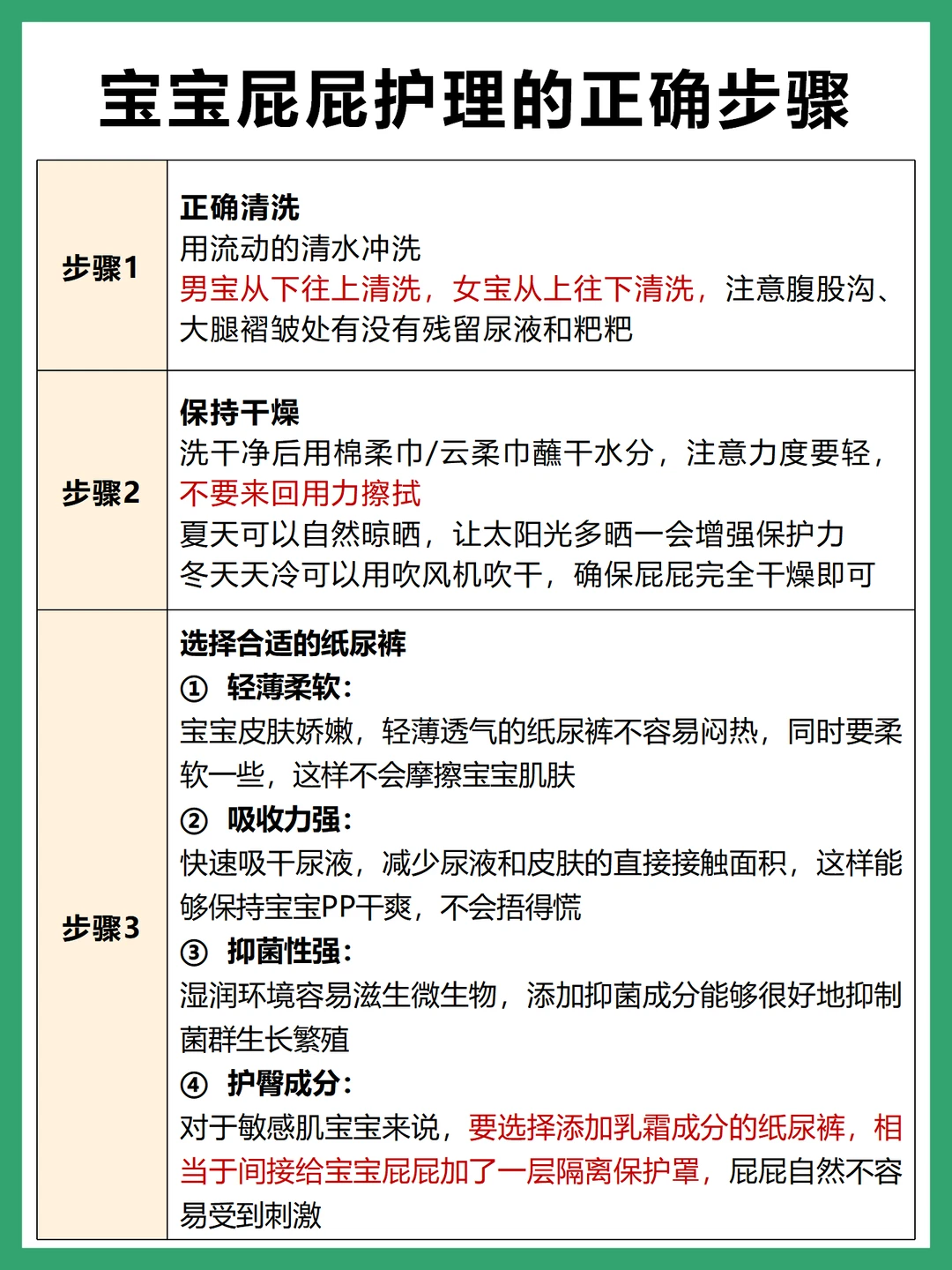 ✅选择合适的纸尿裤:透气、柔软、吸水性要好