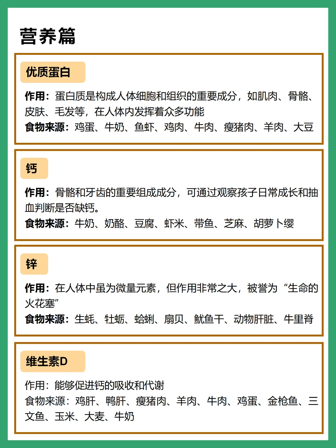 ✅营养:饮食要多样化,这样营养才能均衡,同时注意优质蛋白、钙、锌、维生素D等关键营养的摄入