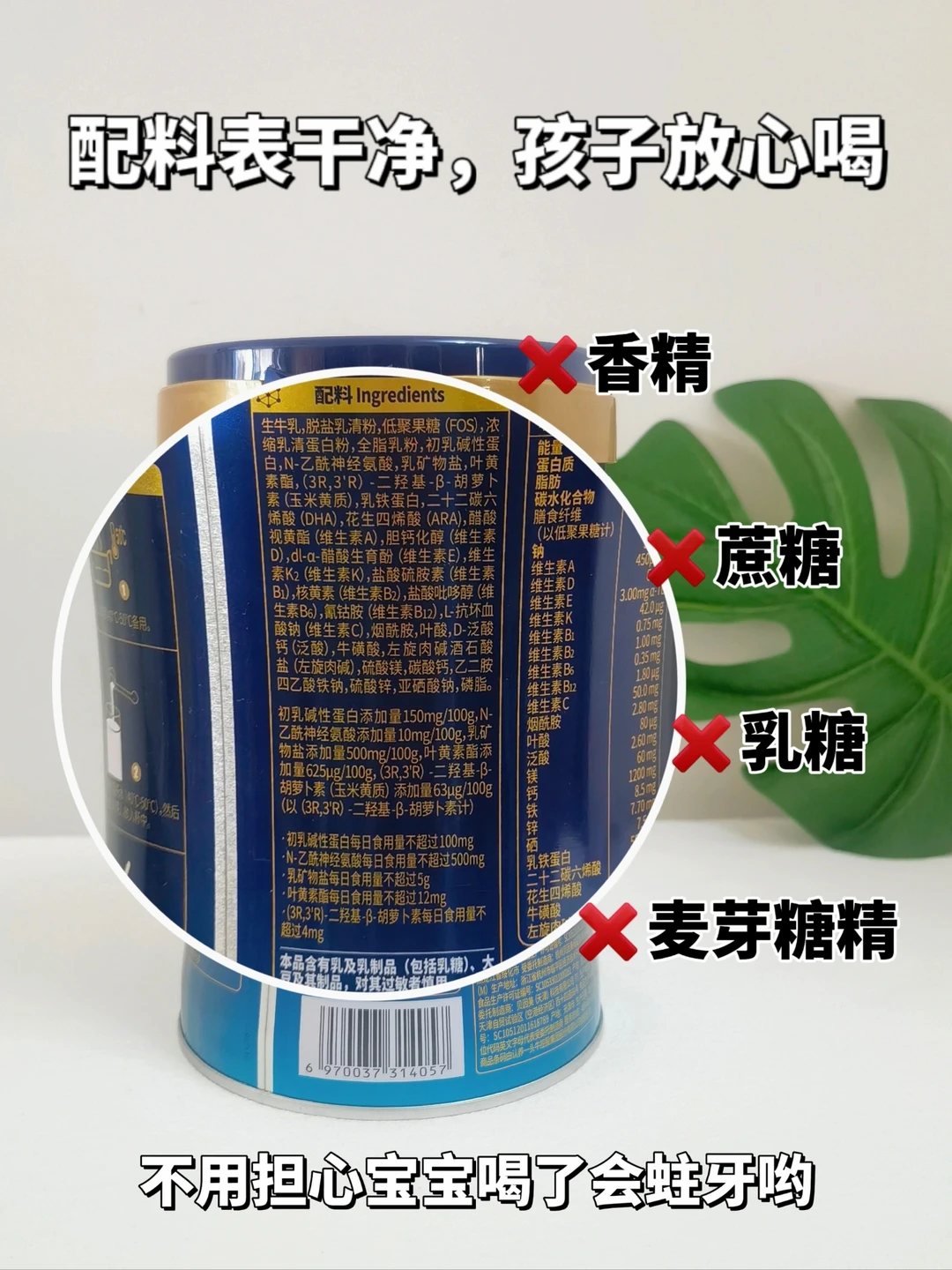 他家最近含量也是进行了大升级‼钙含量从1000mg/100g提升👉1200mg,初乳碱性蛋白也更加倍!真的下了血本的良心商家了。维生素矿物质就有17种,像DHA、ARA、加叶黄素酯、玉米黄质、维生素A、乳铁蛋白这些涉及到孩子成长各个方面的营养,这一罐都补全了!对麻麻们👩🏻来说真的很省心~