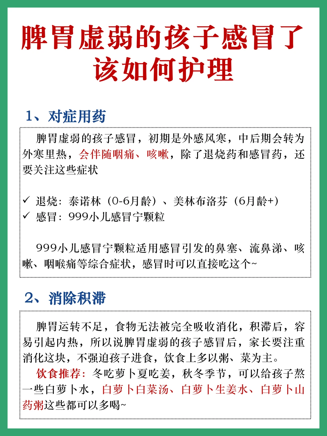 👉感冒后,孩子的身体经过了正邪交战,能量消耗较大,也会导致脾胃之气不足,在饮食方面也要十分注意